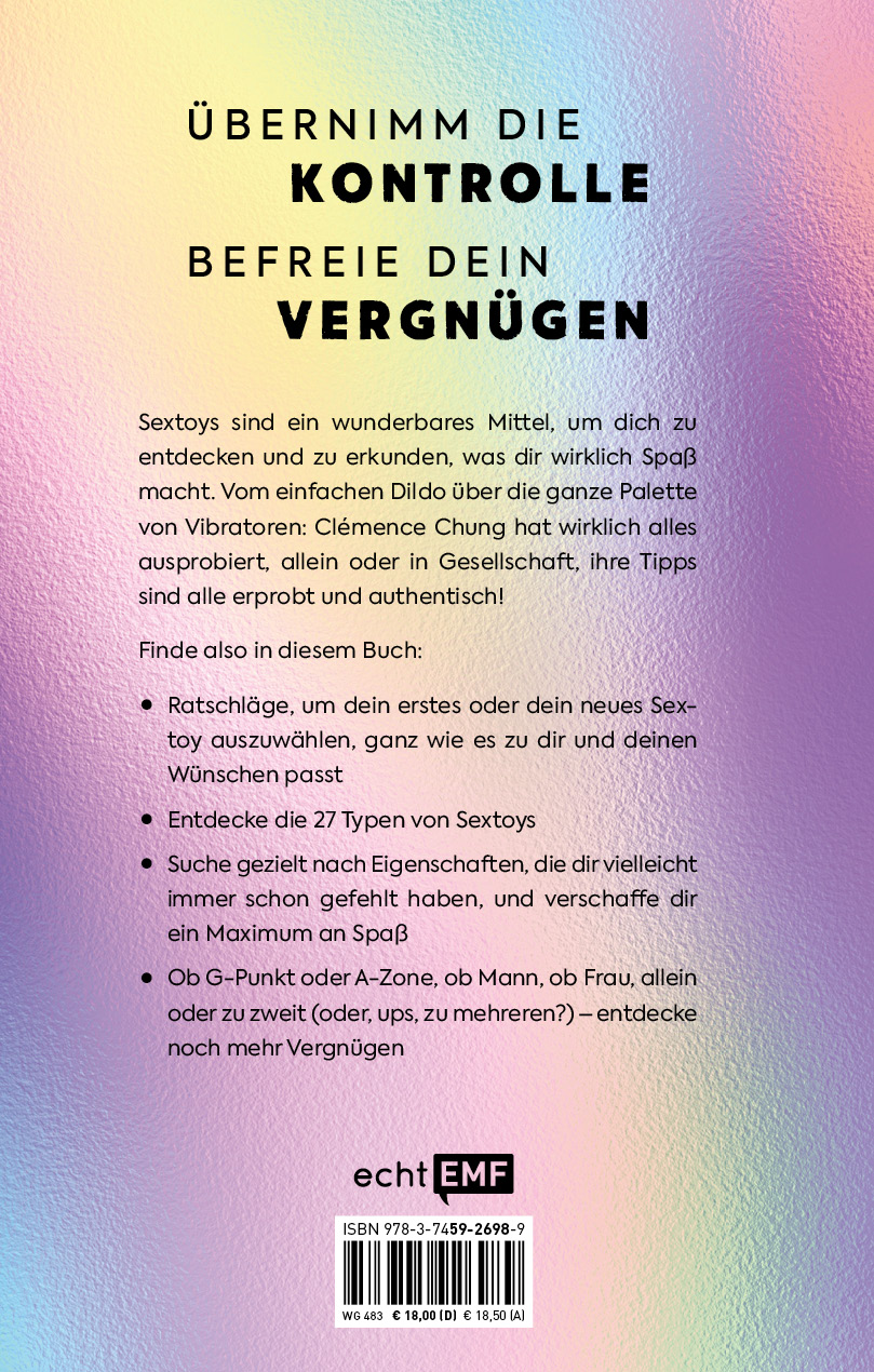 Zur AutorinCLÉMENCE CHUNG GOFMAN ist 31 Jahre alt und seit 2015 Sextoy-Testerin. Auf ihrem YouTube-Kanal „Clemity Jane“ und dem gleichnamigen Instagram-Account teilt sie ihre Empfehlungen zu ihren Lieblingsmodellen sowie ihre Tipps zum Thema Sex im Allgemeinen. Im Jahr 2022 hat sie in Zusammenarbeit mit der Sexshop-Kette „Passage du désir“ eine eigene Kollektion von Sexspielzeugen entwickelt.