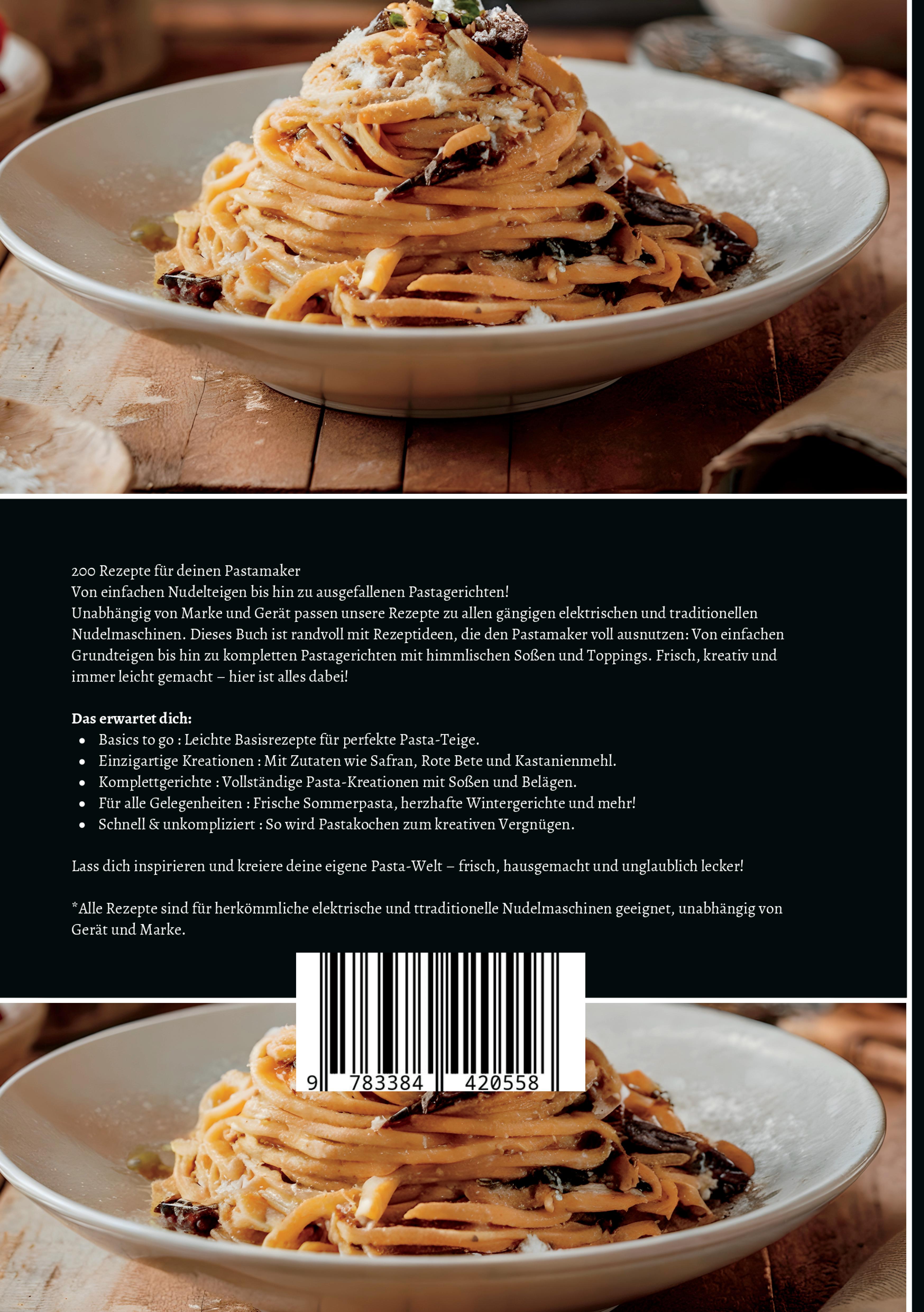 200 Rezepte für deinen Pastamaker - Von einfachen Nudelteigen bis hin zu ausgefallenen Pastagerichten!Unabhängig von Marke und Gerät passen unsere Rezepte zu allen gängigen elektrischen Nudelmaschinen. Dieses Buch ist randvoll mit Rezeptideen, die den Pastamaker voll ausnutzen: Von einfachen Grundteigen bis hin zu kompletten Pastagerichten mit himmlischen Soßen und Toppings. Frisch, kreativ und immer leicht gemacht - hier ist alles dabei!Das erwartet dich:- Basics to go : Leichte Basisrezepte für perfekte Pasta-Teige.- Einzigartige Kreationen : Mit Zutaten wie Safran, Rote Bete und Kastanienmehl.- Komplettgerichte : Vollständige Pasta-Kreationen mit Soßen und Belägen.- Für alle Gelegenheiten : Frische Sommerpasta, herzhafte Wintergerichte und mehr!- Schnell & unkompliziert : So wird Pastakochen zum kreativen Vergnügen.Lass dich inspirieren und kreiere deine eigene Pasta-Welt - frisch, hausgemacht und unglaublich lecker!*Alle Rezepte sind für herkömmliche elektrische Nudelmaschinen geeignet, unabhängig von Gerät und Marke.