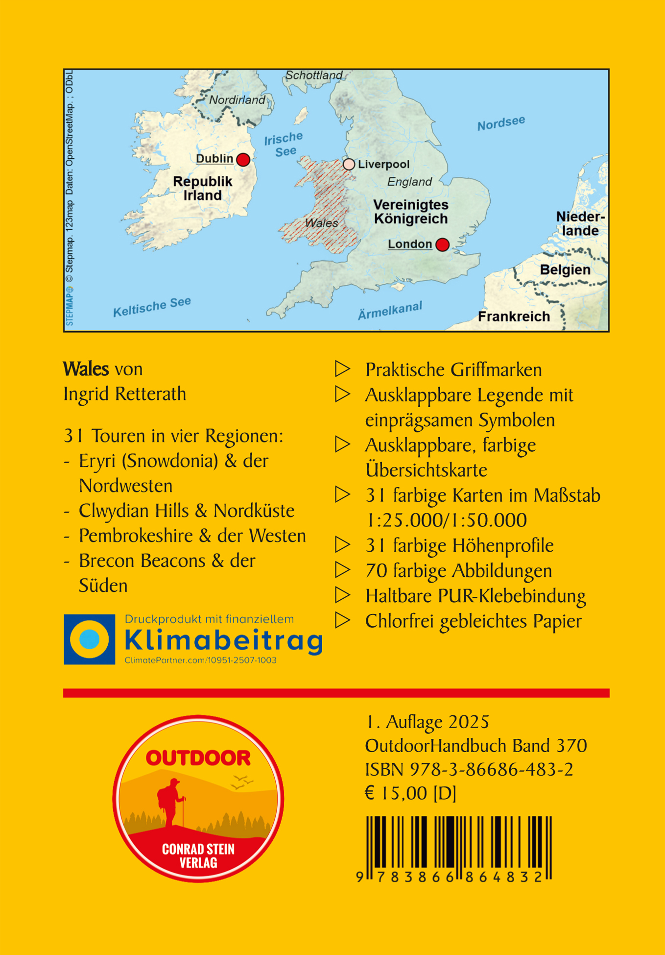 Wales ist ein großartiges Wanderland für jeden Geschmack. Auf 27 handverlesenen Wanderungen geht es in diesem Band durch die atemberaubenden Landschaften: von den mystischen Bergen des Eryri-Nationalparks über die rauen Küstenpfade Pembrokeshires bis hin zu den sanften Hügeln im Bannau-Brycheiniog-Nationalpark. Wasserfälle, alte Burgen und atemberaubende Aussichten sind allerorts zu finden. Jede Wanderung wird detailliert beschrieben, mit hilfreichen Informationen zu Länge, Schwierigkeitsgrad und Sehenswürdigkeiten entlang des Weges. Bei allen beschriebenen Wanderungen gibt es Hinweise darauf, ob sie mit Kindern, Buggy oder Hunde gewandert werden können.