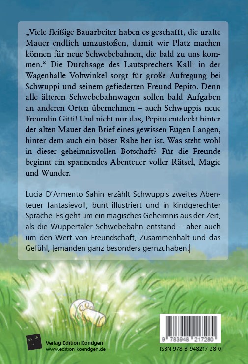| Schlagworte | Aralandia • Eugen Langen • Geheimnis • Geschenk • Gitti • Kiebitz • magisch • Niet • Schwebebahn • Schwuppi • Straßenbahn • Stütze • Vohwinkel • Wuppertal • zoo |