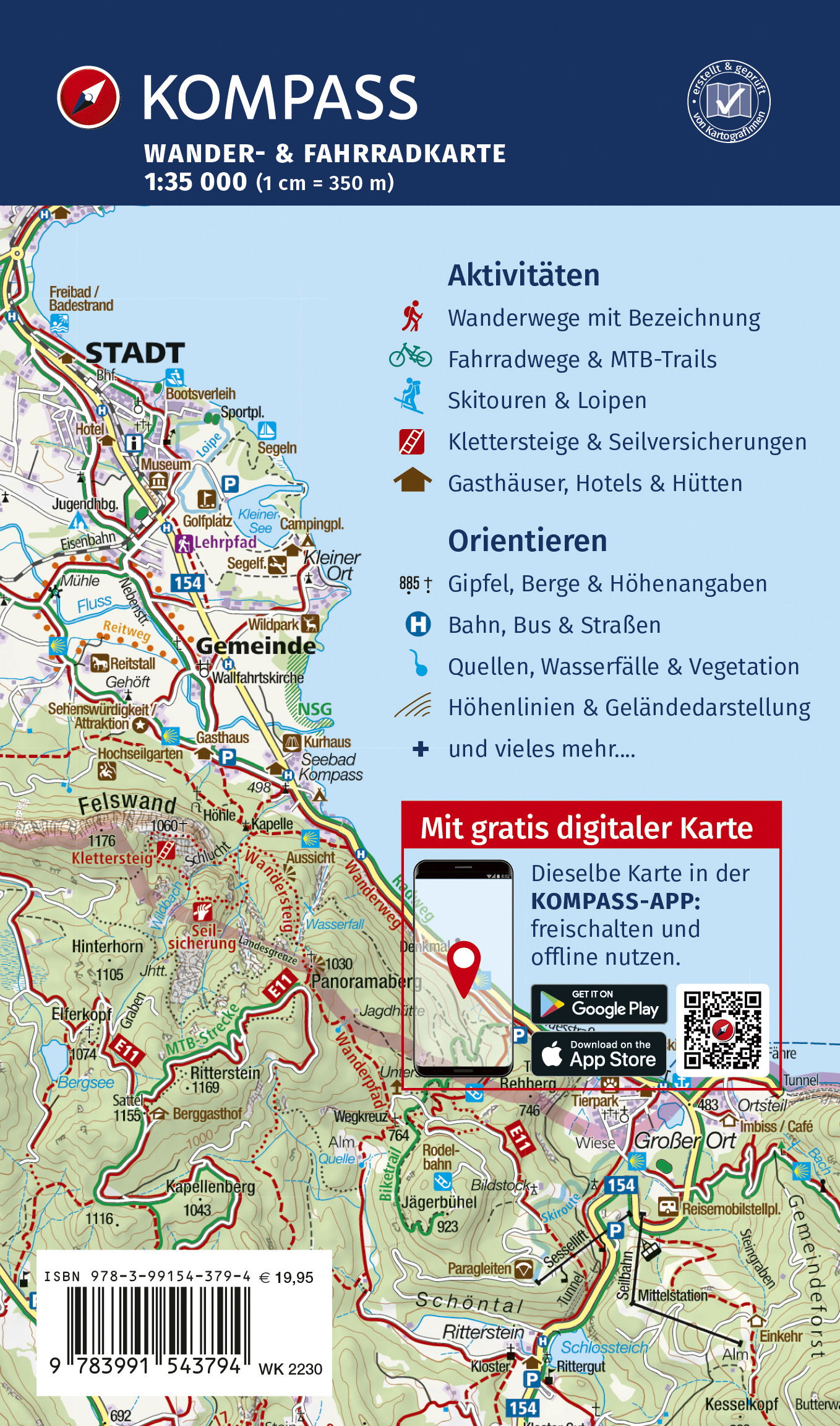 Kompass Wanderkarten-Sets decken eine ganze Region mit mehreren Karten ab. Sie sind einfach zu lesen und beinhalten trotzdem alle Informationen, die man für eine perfekte Wandertour, eine Fahrradrunde oder einen Ausflug benötigt. Sie bilden die Natur im passenden Maßstab ab. Unzählige zusätzliche Informationen werden vom Kartografie-Team laufend geprüft und erweitert. Die präzise Kartografie beinhaltet alle offiziellen Wanderwege mit Namen und Wegnummer (wie Fernwege), Fahrradwege (mit Trails), Klettersteige, Gasthäuser und Hütten, Parkplätze, Bus & Bahn, Skitouren und Loipen, Quellen, Badeplätze und vieles mehr. Das macht die Karte ideal zum Entdecken neuer Ziele, zum Planen von Touren und zum Orientieren unterwegs. Ein intuitives Kartenbild der Landschaft entsteht durch die abgebildete Vegetation, Höhenlinien, Felszeichnung sowie der Schummerung (Schattenwurf) der Berge.