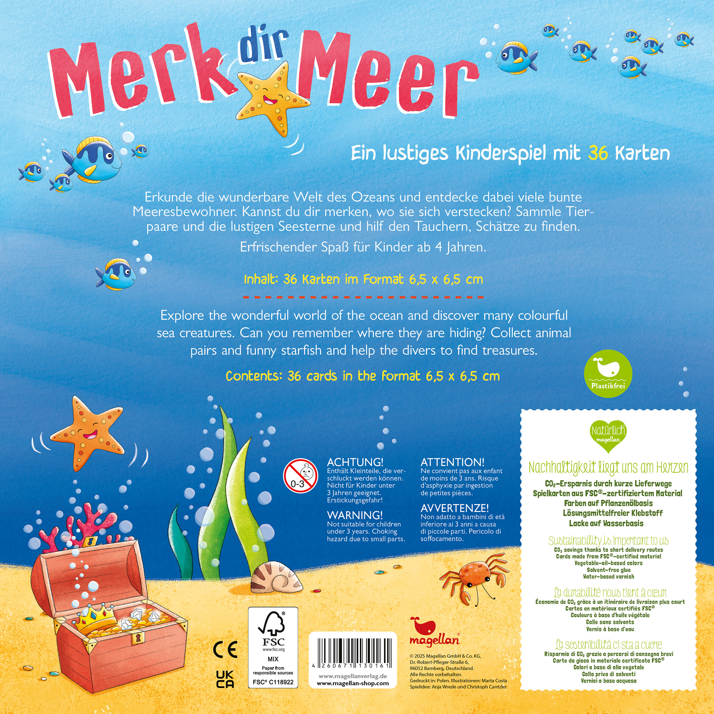 | Schlagworte | Delfin • Feinmotorik • Fisch • für Jungen • für Mädchen • Gedächtnis • Geschenk 4. Geburtstag • Kinderspiel • Krabbe • Meer • Memo • Memory • Merken • Ozean • Schildkröte • Seesterne • Spiel ab 4 Jahren • Unterwasser • Wasser |