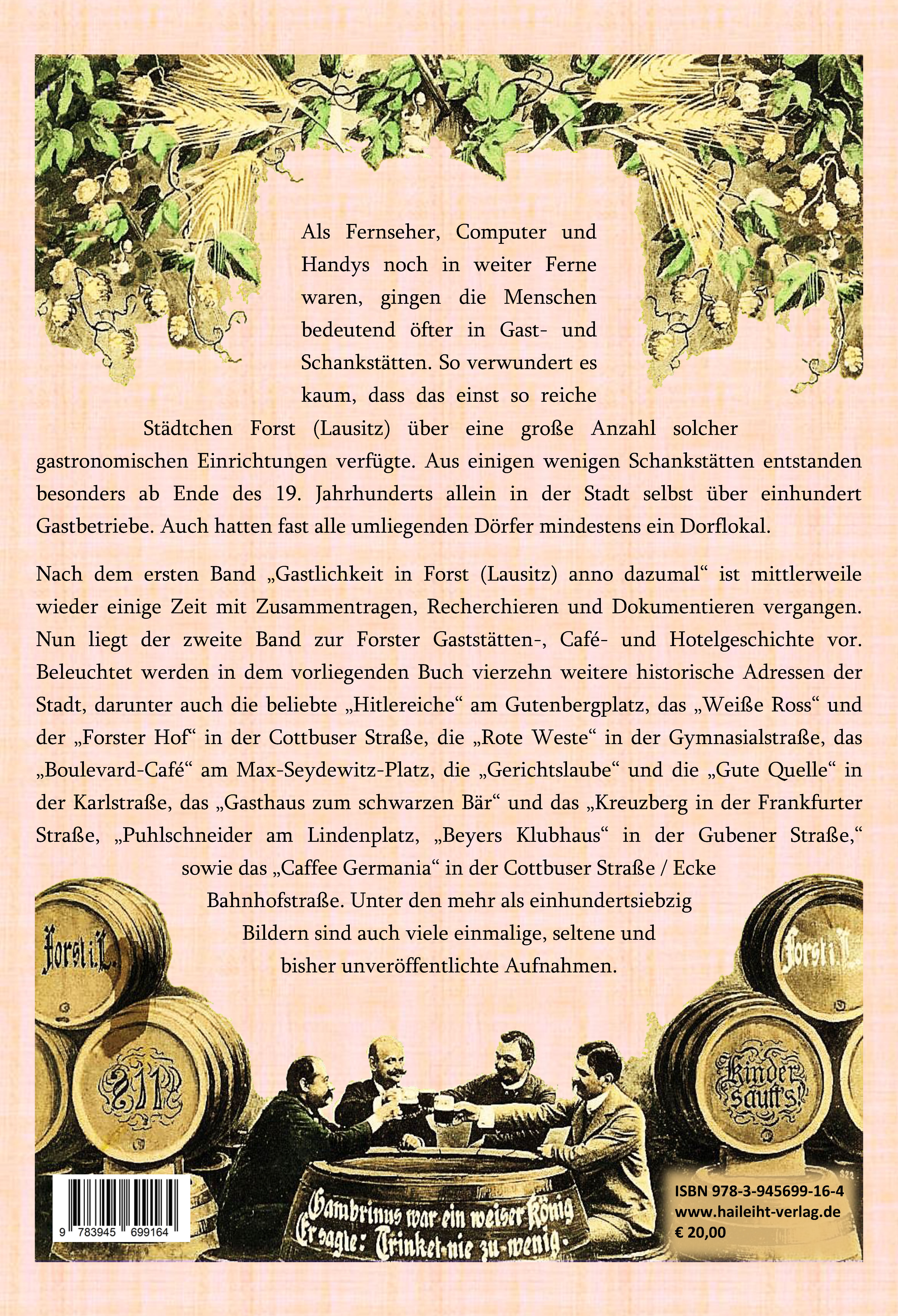 Nach fast dreißig Jahren des Zusammentragens von Sammelobjekten sowie mehreren Jahren Recherchierens und Dokumentierens liegt nun der zweite Band der Forster Gaststätten-, Café- und Hotelgeschichte vor.