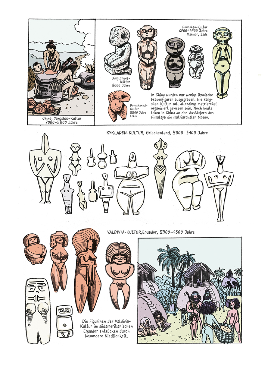 Stolze Hüften aus Knochen, Stein, gebranntem Ton. Wir nennen sie Göttinnen, doch wer oder was waren sie wirklich? In Büchern über die Steinzeit sehen wir vorrangig Männer beim Jagen, Feuerstein schlagen oder Höhlen bemalen. Die meisten Menschenbilder aber, die uns von Eiszeitmenschen selbst hinterlassen wurden, zeigen Frauen. Was waren das für Gesellschaften, die sie und ihr Geschlecht so zentral und ohne Scham darstellten? Nach Jahren der Recherche kehrt Ulli Lust zurück mit ihrem groß angelegten Sachcomic über die Anfänge der Kunst und die Bedeutung der Empathie für das Überleben unserer Spezies: Rund um die archaisch-weiblichen Figurinen entfaltet sich eine vergessene Welt, in der die Heldenreise Gruppensache war, die nur gemeinsam bestanden werden konnte, von Frauen, Männern, Kindern oder auch nichtbinären Menschen in mitunter reich geschmückter Rolle.