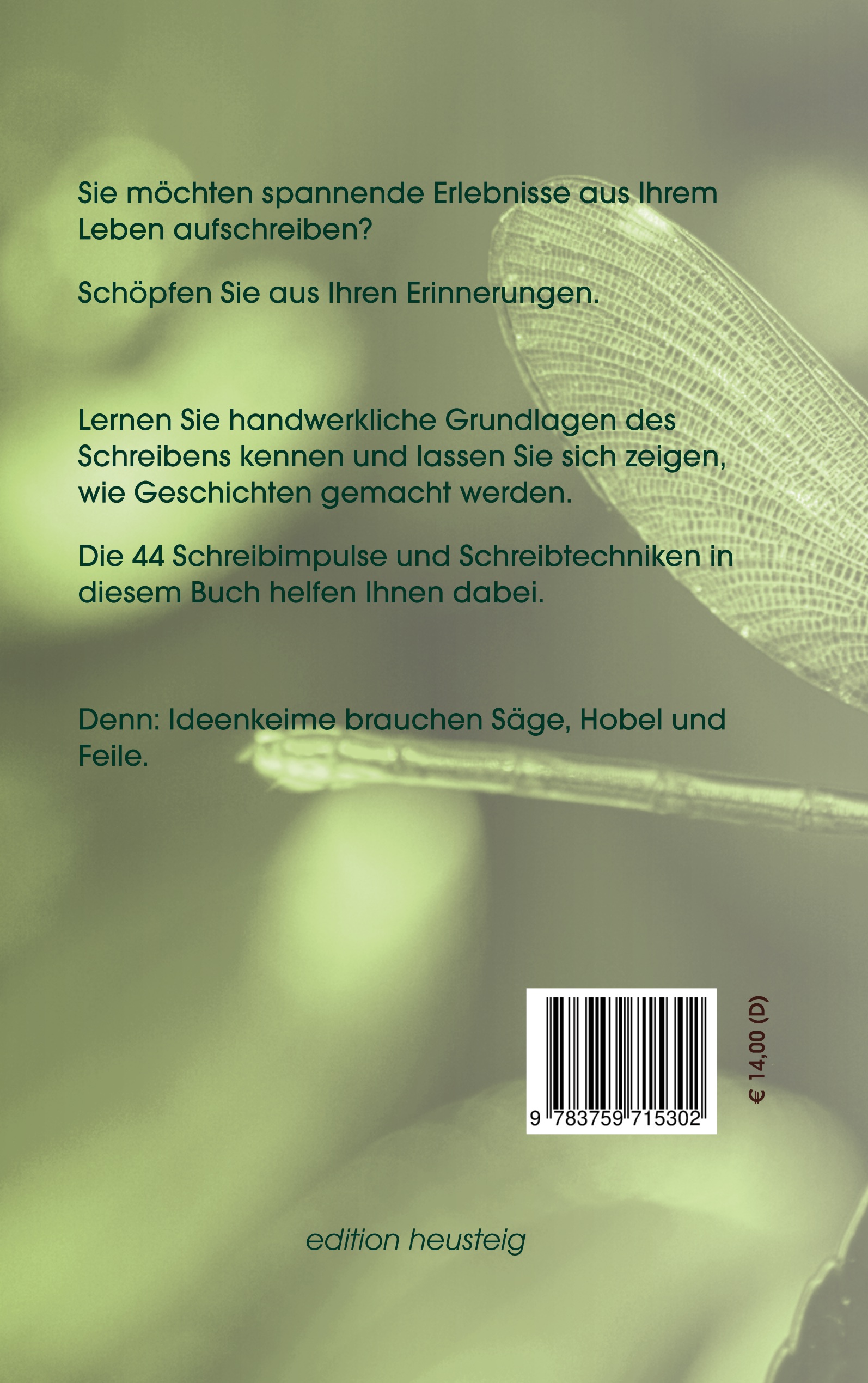 | Schlagworte | 44 Schreibimpulse • Autobiografisches Schreiben • Die Wahrheit liegt in der Mitte • Ideenkeime brauchen Säge, Hobel und Feile • Schreibratgeber Libelle |