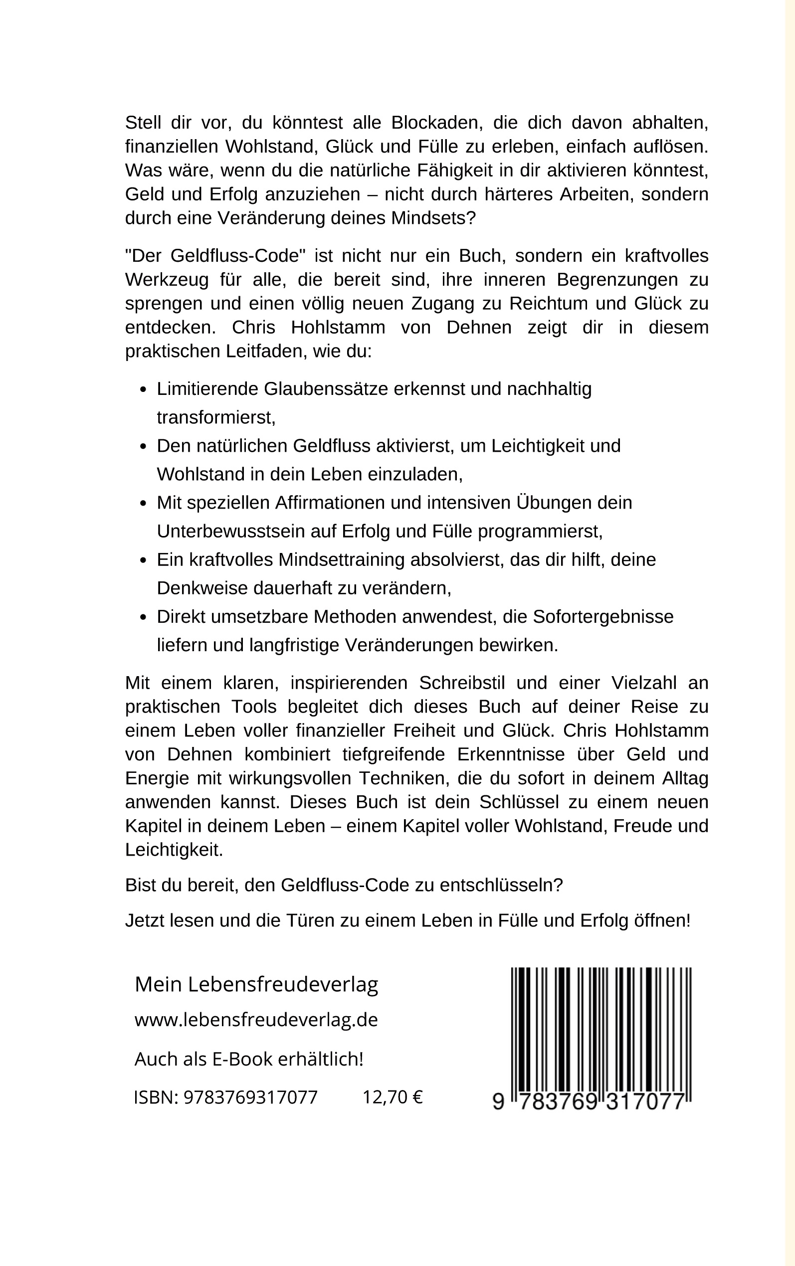 Der Geldfluss-Code ist nicht nur ein Buch, sondern ein kraftvolles Werkzeug für alle, die bereit sind, ihre inneren Begrenzungen zu sprengen und einen völlig neuen Zugang zu Reichtum und Glück zu entdecken. Chris Hohlstamm von Dehnen zeigt dir in diesem praktischen Leitfaden, wie du: