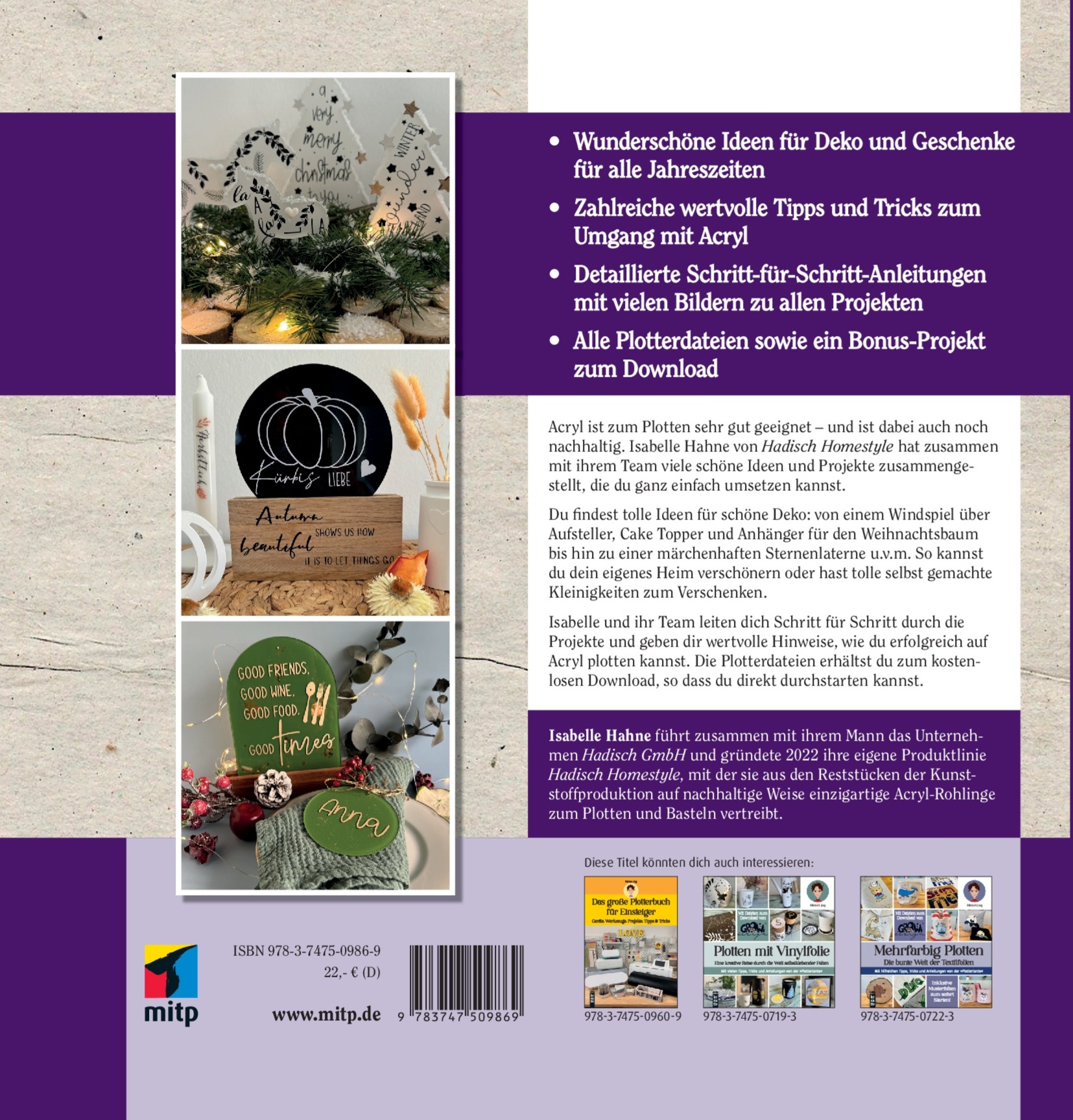 | Schlagworte | Accessoires • Acryl • acryl plotten • Buch • Bücher • Cameo • cricut • Deko • deko plotten • Dekoration • Geschenke • geschenke plotten • mitp • Plotten • Plotten für Anfänger • Plotter • plottermaschine • ScanNCut • Schneideplotter • Silhouette |