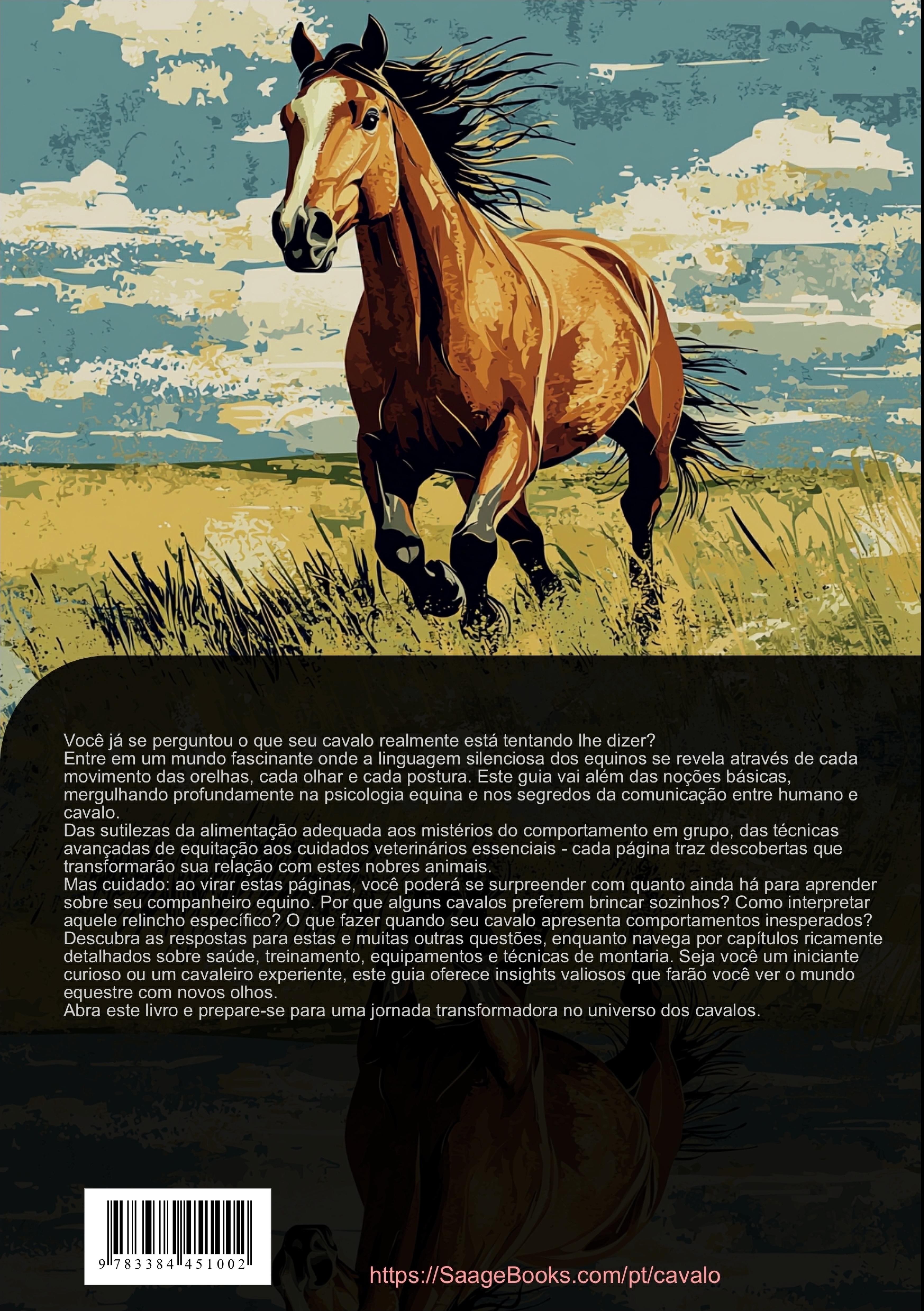 Bem-vindo ao guia mais abrangente sobre equinos, um recurso valioso para proprietários, cavaleiros e entusiastas do mundo equestre.Este livro oferece uma exploração detalhada da anatomia equina, começando com os fundamentos essenciais do cuidado diário dos cavalos. Você aprenderá sobre nutrição adequada, rotinas de estabulação e programas de exercícios adaptados às necessidades individuais do seu cavalo.Na seção de saúde, abordamos doenças comuns, medidas preventivas e procedimentos básicos de primeiros socorros. Dedicamos especial atenção à linguagem corporal dos equinos, ajudando você a compreender melhor seu cavalo e estabelecer uma comunicação efetiva.Para os interessados em equitação, oferecemos orientações práticas sobre diferentes estilos de montaria, incluindo equitação. Abordamos a importância do equipamento adequado, com foco especial em botas de equitação e sua manutenção.Descubra como os caballos brincar contribui para seu bem-estar físico e mental, e aprenda a reconhecer sinais de comportamento saudável. O livro inclui seções sobre diferentes disciplinas equestres, desde dressage até enduro.Cada capítulo foi desenvolvido para fornecer informações práticas e aplicáveis, baseadas em conhecimento veterinário atual e técnicas modernas de equitação. As ilustrações detalhadas e fotografias auxiliam na compreensão da anatomia e das técnicas descritas.Seja você um iniciante ou um cavaleiro experiente, este guia oferece conhecimentos valiosos para aprimorar sua relação com os cavalos e desenvolver suas habilidades equestres.Este livro foi criado com o uso de tecnologias inovadoras, como Inteligência Artificial e ferramentas especialmente desenvolvidas - por exemplo, na geração de ideias, pesquisa, escrita, edição, garantia de qualidade e design de ilustrações decorativas.Desta forma, queremos oferecer-lhe uma experiência de leitura particularmente coerente, moderna e de ainda maior qualidade.