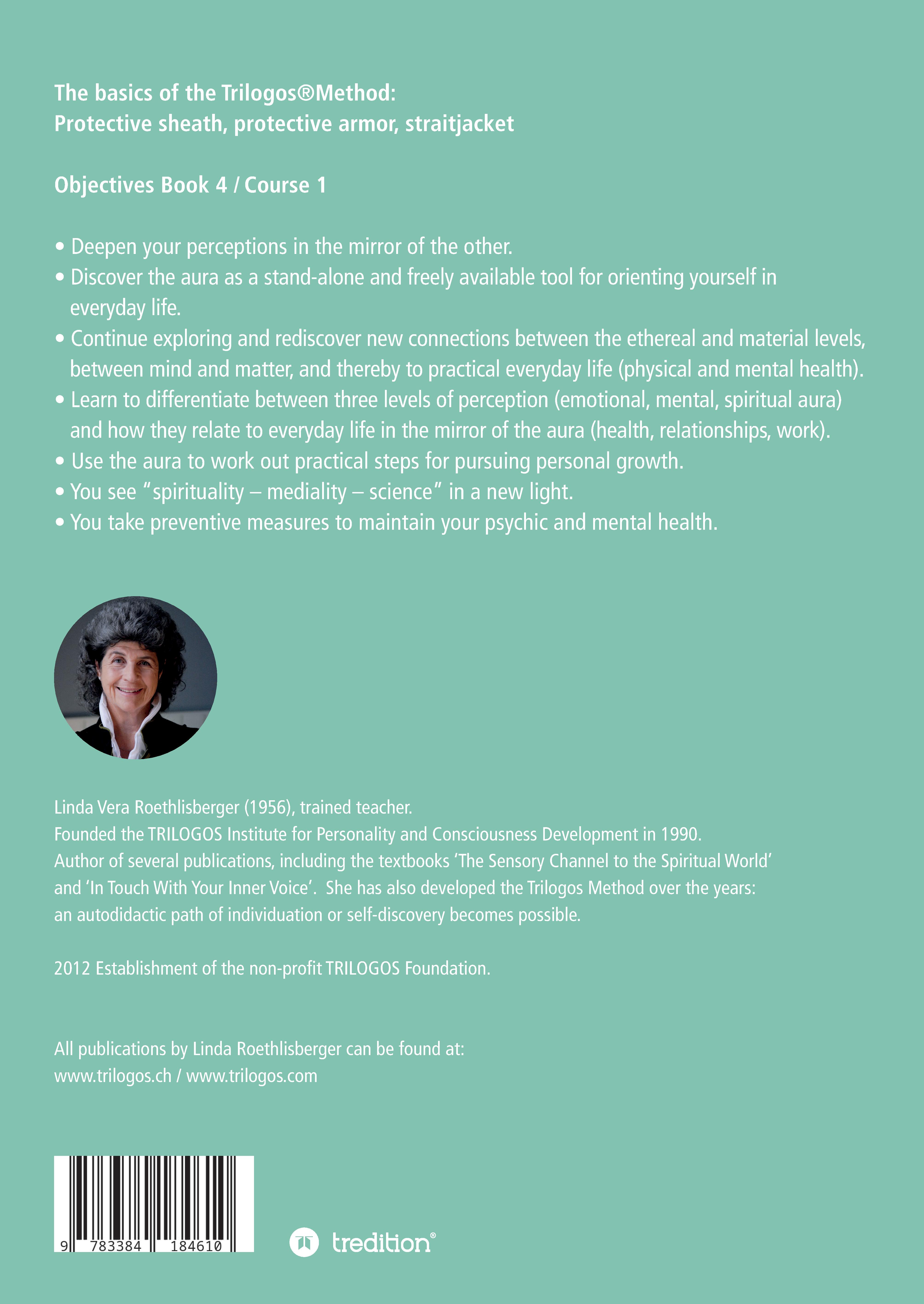 Linda Vera Roethlisberger (1956), ausgebildete Lehrerin. Parallel dazu bildete sie in Bern und Paris ihr Talent als Künstlerin aus. Ihre eigenen medialen Anlagen bildete sie weiter als Schülerin von Silvia Wallimann, Prof. Dr. Milan Ryzl und Gordon Higginson und arbeitet seither u.a. auch als Medium. 1990 Gründung vom Institut TRILOGOS für Persönlichkeits- und Bewusstseinsschulung. Autorin mehrerer Publikationen, so u.a. der Lehrbücher »Der sinnliche Draht zur geistigen Welt« und »Im Kontakt mit der inneren Stimme«. Weiter entwickelte sie über die Jahre hinweg die TRILOGOS®Methode: ein autodidaktischer Individuations- oder Selbstfindungsweg wird möglich. 2012 Gründung der gemeinnützigen TRILOGOS Stiftung.