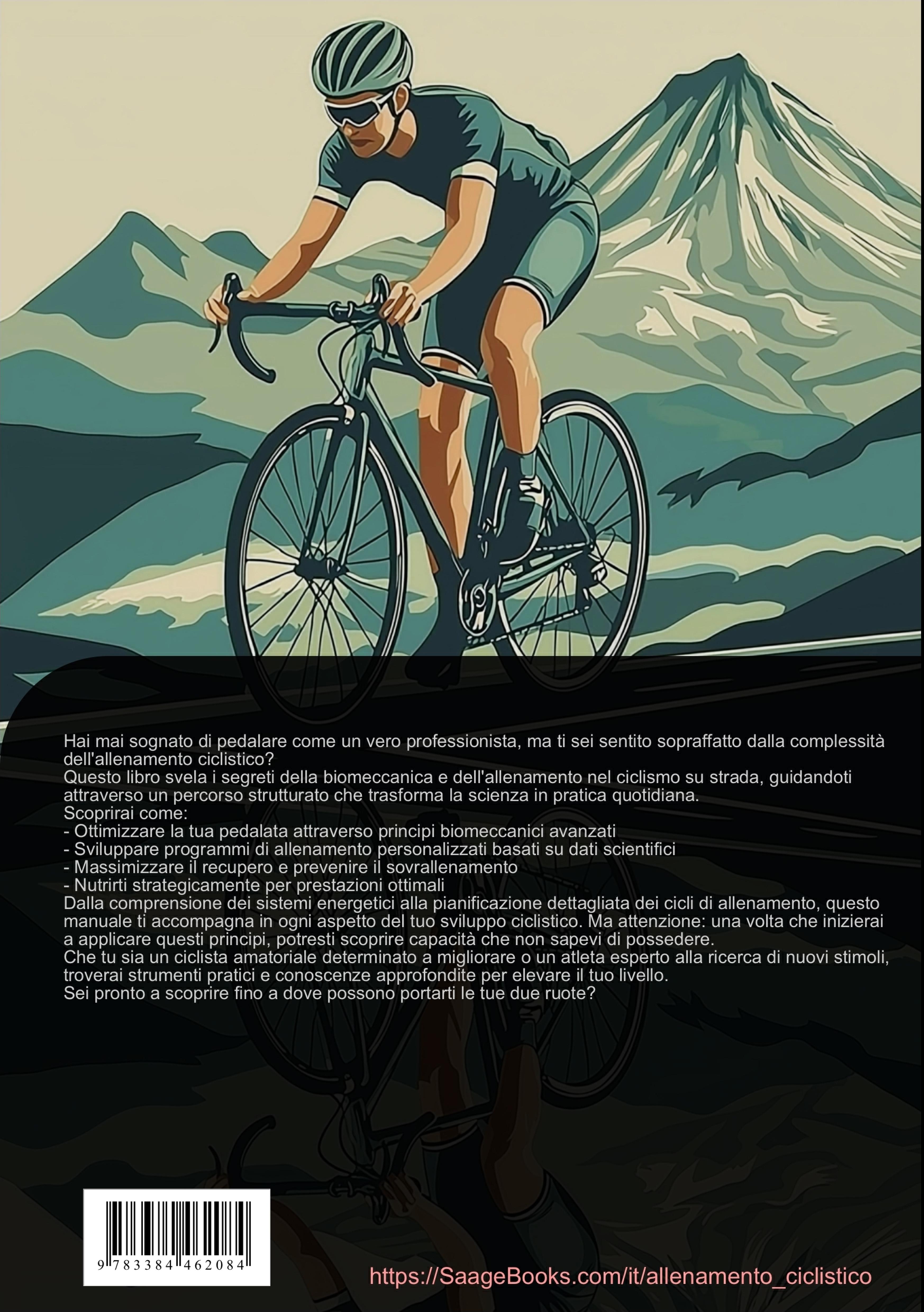 Questa guida approfondita all'allenamento ciclistico offre una panoramica dettagliata sulla biomeccanica e sul ciclismo su strada, fornendo strumenti pratici per ottimizzare le prestazioni atletiche.Il libro si apre con un'analisi accurata dei fondamenti fisiologici del ciclismo, esplorando i sistemi energetici coinvolti, il funzionamento muscolare e il monitoraggio della frequenza cardiaca. Vengono presentate metodologie di allenamento strutturate, dalla costruzione della resistenza di base alla pianificazione degli intervalli, includendo l'importante aspetto della periodizzazione.Una sezione dedicata alla biomeccanica ciclismo analizza in dettaglio la tecnica di pedalata, la posizione in sella e l'aerodinamica. Gli atleti troveranno indicazioni precise per migliorare l'efficienza del movimento e prevenire infortuni attraverso un corretto allineamento biomeccanico.Il testo approfondisce anche l'allenamento della forza specifico per il ciclismo, con programmi mirati per il core training e la stabilità muscolare. Particolare attenzione viene data alla tecnica di guida, includendo elementi come la gestione delle curve e la pedalata in salita.La parte finale si concentra sulla nutrizione sportiva e le strategie di recupero, offrendo linee guida per l'alimentazione prima, durante e dopo l'attività. Vengono forniti protocolli pratici per ottimizzare il recupero e gestire i cicli di allenamento.Questo manuale rappresenta una risorsa per ciclisti di ogni livello che desiderano migliorare le proprie prestazioni attraverso un approccio scientifico all'allenamento ciclistico.Questo libro è stato creato utilizzando tecnologie innovative come l'Intelligenza Artificiale e strumenti sviluppati appositamente - ad esempio, nella ricerca di idee, nella ricerca, nella scrittura, nella redazione, nel controllo qualità e nella progettazione di illustrazioni decorative.In questo modo, vogliamo offrirvi un'esperienza di lettura particolarmente coerente, moderna e di qualità ancora superiore.