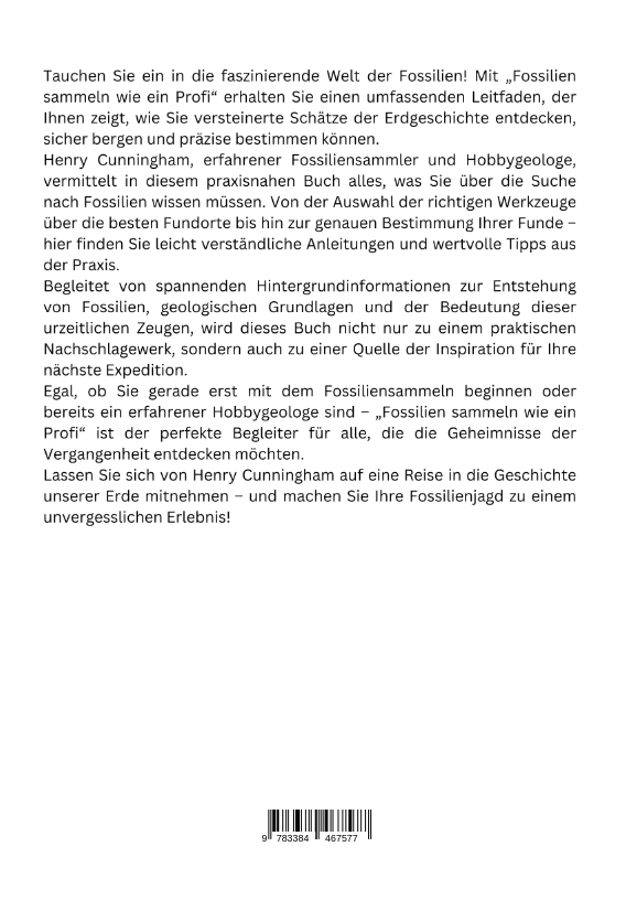 Tauchen Sie ein in die faszinierende Welt der Fossilien! Mit "Fossilien sammeln wie ein Profi" erhalten Sie einen umfassenden Leitfaden, der Ihnen zeigt, wie Sie versteinerte Schätze der Erdgeschichte entdecken, sicher bergen und präzise bestimmen können.Henry Cunningham, erfahrener Fossiliensammler und Hobbygeologe, vermittelt in diesem praxisnahen Buch alles, was Sie über die Suche nach Fossilien wissen müssen. Von der Auswahl der richtigen Werkzeuge über die besten Fundorte bis hin zur genauen Bestimmung Ihrer Funde - hier finden Sie leicht verständliche Anleitungen und wertvolle Tipps aus der Praxis.Begleitet von spannenden Hintergrundinformationen zur Entstehung von Fossilien, geo-logischen Grundlagen und der Bedeutung dieser urzeitlichen Zeugen, wird dieses Buch nicht nur zu einem praktischen Nachschlagewerk, sondern auch zu einer Quelle der Inspiration für Ihre nächste Expedition.Egal, ob Sie gerade erst mit dem Fossiliensammeln beginnen oder bereits ein erfahrener Hobbygeologe sind - "Fossilien sammeln wie ein Profi" ist der perfekte Begleiter für alle, die die Geheimnisse der Vergangenheit entdecken möchten.Lassen Sie sich von Henry Cunningham auf eine Reise in die Geschichte unserer Erde mitnehmen - und machen Sie Ihre Fossilienjagd zu einem unvergesslichen Erlebnis!