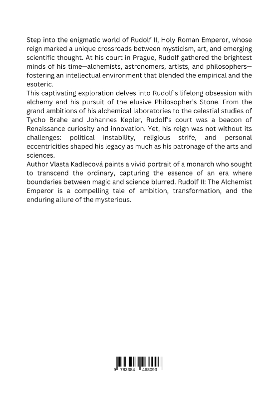 Step into the enigmatic world of Rudolf II, Holy Roman Emperor, whose reign marked a unique crossroads between mysticism, art, and emerging scientific thought. At his court in Prague, Rudolf gathered the brightest minds of his time-alchemists, astronomers, artists, and philosophers-fostering an intellectual environment that blended the empirical and the esoteric.This captivating exploration delves into Rudolf's lifelong obsession with alchemy and his pursuit of the elusive Philosopher's Stone. From the grand ambitions of his alchemical laboratories to the celestial studies of Tycho Brahe and Johannes Kepler, Rudolf's court was a beacon of Renaissance curiosity and innovation. Yet, his reign was not without its challenges: political instability, religious strife, and personal eccentricities shaped his legacy as much as his patronage of the arts and sciences.Author Vlasta Kadlecová paints a vivid portrait of a monarch who sought to transcend the ordinary, capturing the essence of an era where boundaries between magic and science blurred. Rudolf II: The Alchemist Emperor is a compelling tale of ambition, transformation, and the enduring allure of the mysterious.