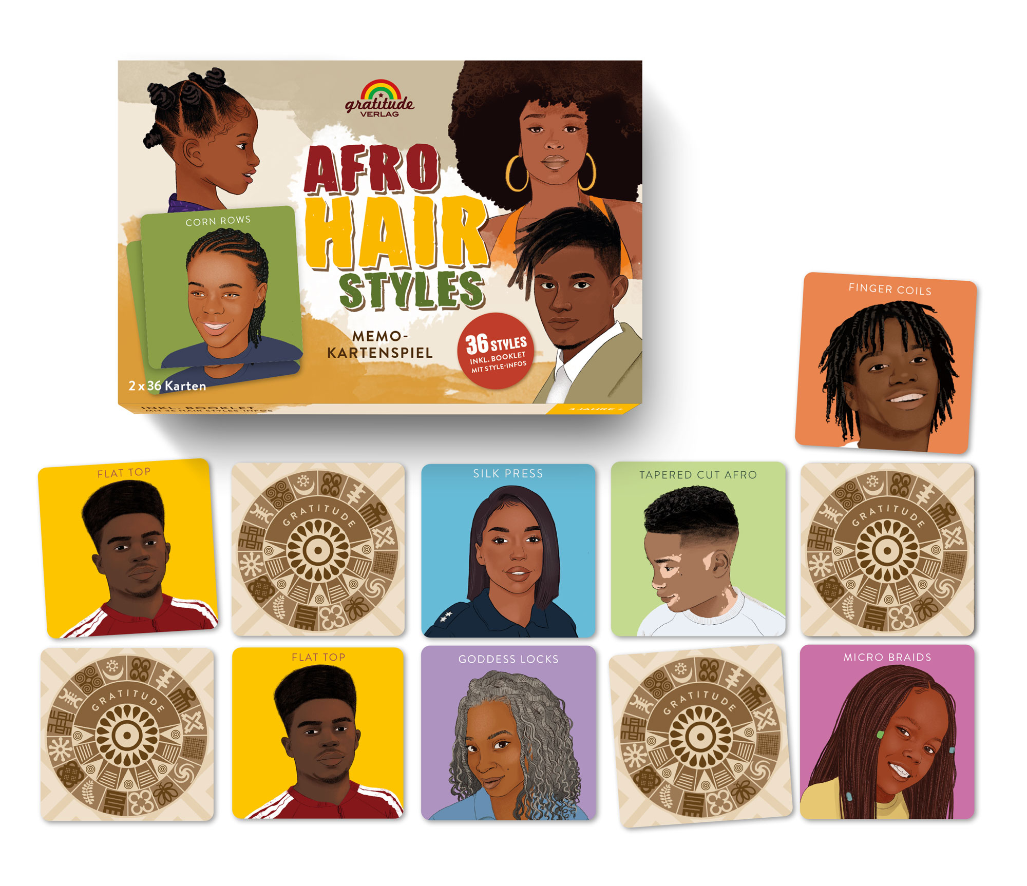 Afro Hair Styles. Memo-Kartenspiel mit 36 Styles incl. Booklet mit Style Infos