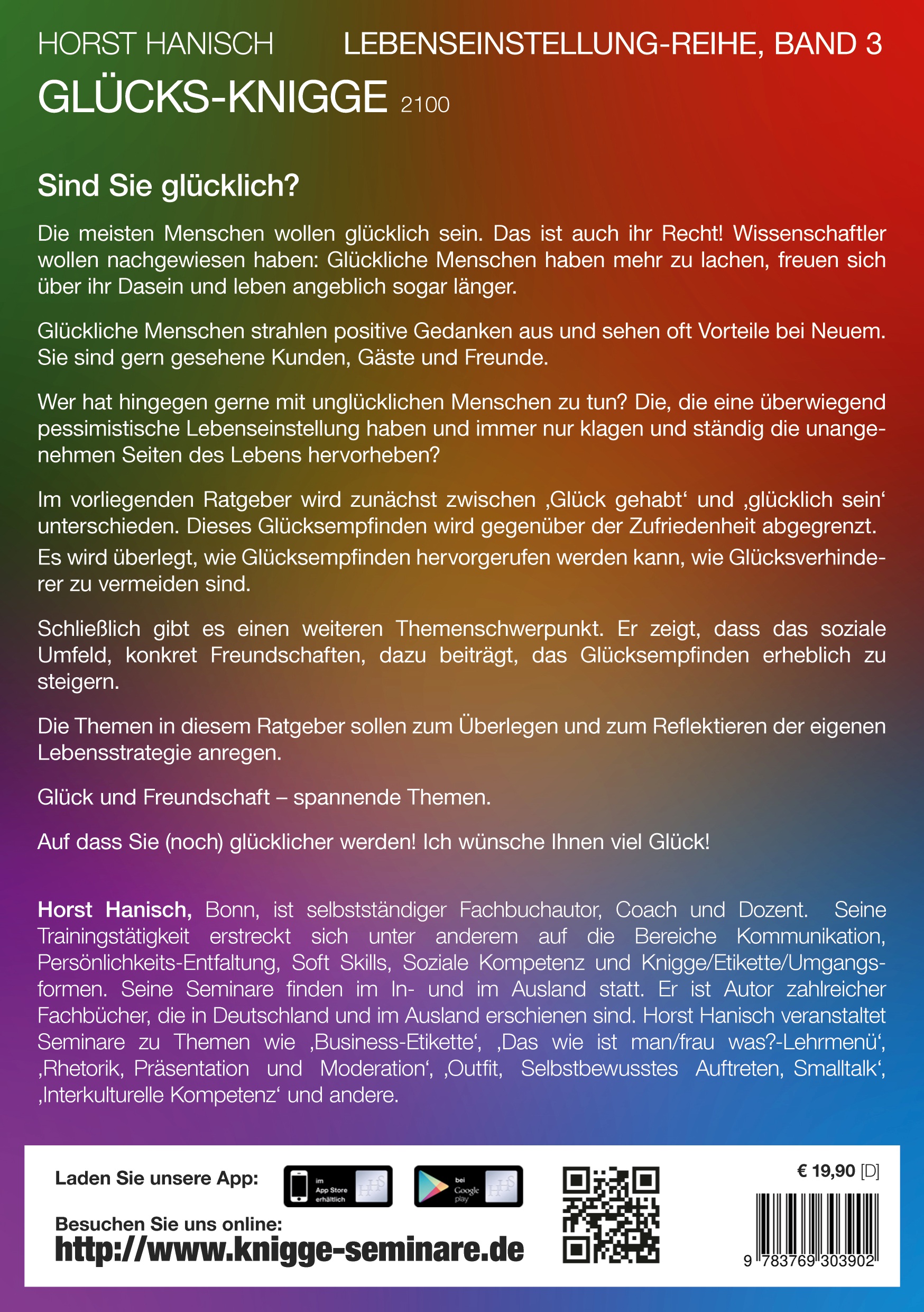Horst Hanisch, Bonn, ist selbstständiger Fachbuchautor, Coach und Dozent. Seine Trainingstätigkeit erstreckt sich unter anderem auf die Bereiche Kommunikation, Persönlichkeits-Entfaltung, Soft Skills, Soziale Kompetenz und Knigge/Etikette/Umgangsformen. Seine Seminare finden im In- und Ausland statt. Er ist Autor zahlreicher Fachbücher, die in Deutschland und im Ausland erschienen sind. Horst Hanisch veranstaltet Seminare zu Themen wie Business-Etikette, Das wie ist man/frau was?-Lehrmenü, Rhetorik, Präsentation, Moderation, Outfit, Selbstbewusstes Auftreten, Smalltalk, Interkulturelle Kompetenz und andere.