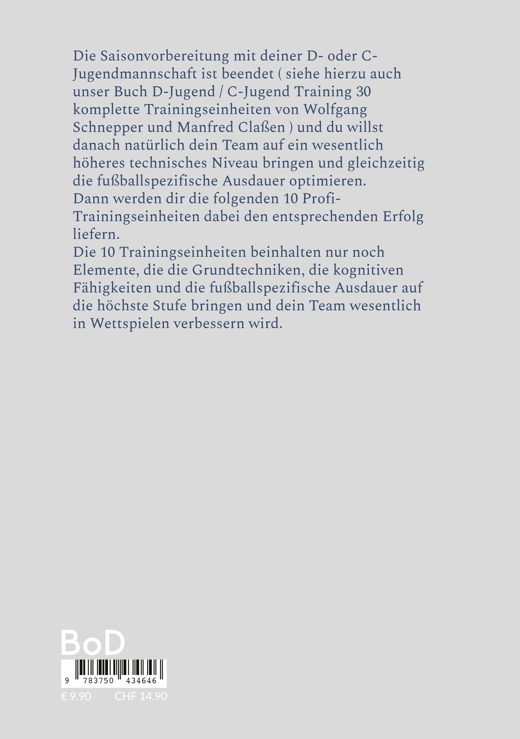 Die Saisonvorbereitung mit deiner D- oder C-Jugendmannschaft ist beendet (siehe hierzu auch unser Buch D-Jugend / C-Jugend Training 30 komplette Trainingseinheiten von Wolfgang Schnepper und Manfred Claßen) und du willst danach natürlich dein Team auf ein wesentlich höheres technisches Niveau bringen und gleichzeitig die fußballspezifische Ausdauer optimieren.