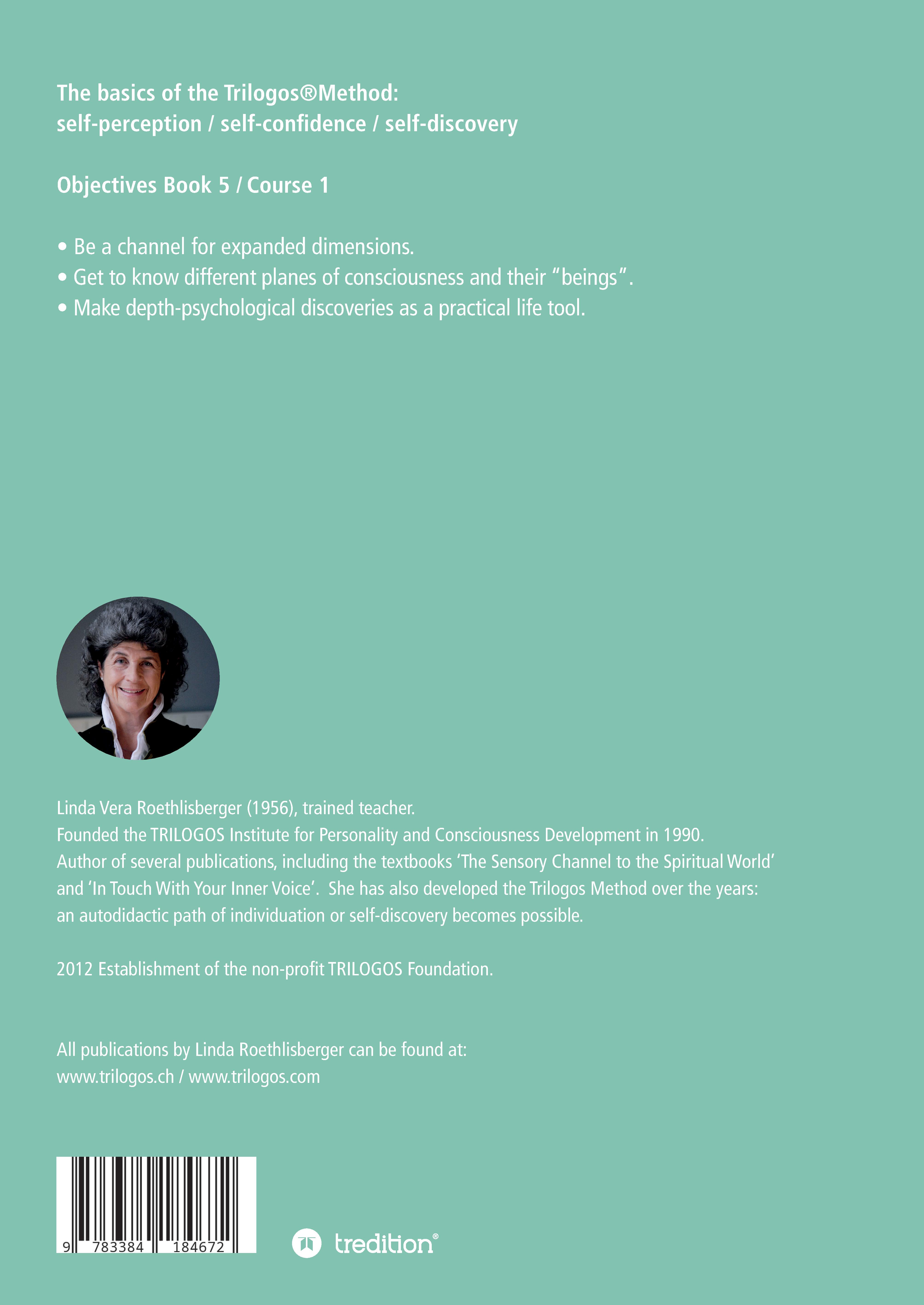 Linda Vera Roethlisberger (1956), ausgebildete Lehrerin. Parallel dazu bildete sie in Bern und Paris ihr Talent als Künstlerin aus. Ihre eigenen medialen Anlagen bildete sie weiter als Schülerin von Silvia Wallimann, Prof. Dr. Milan Ryzl und Gordon Higginson und arbeitet seither u.a. auch als Medium. 1990 Gründung vom Institut TRILOGOS für Persönlichkeits- und Bewusstseinsschulung. Autorin mehrerer Publikationen, so u.a. der Lehrbücher »Der sinnliche Draht zur geistigen Welt« und »Im Kontakt mit der inneren Stimme«. Weiter entwickelte sie über die Jahre hinweg die TRILOGOS®Methode: ein autodidaktischer Individuations- oder Selbstfindungsweg wird möglich. 2012 Gründung der gemeinnützigen TRILOGOS Stiftung.