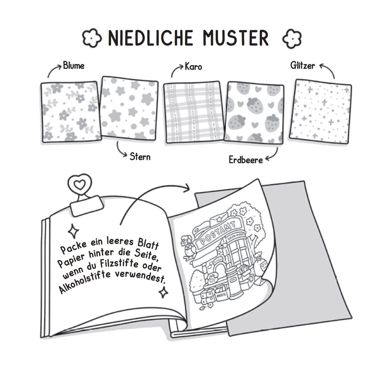 - Über 40 handgezeichnete Seiten, bereit zum Ausmalen