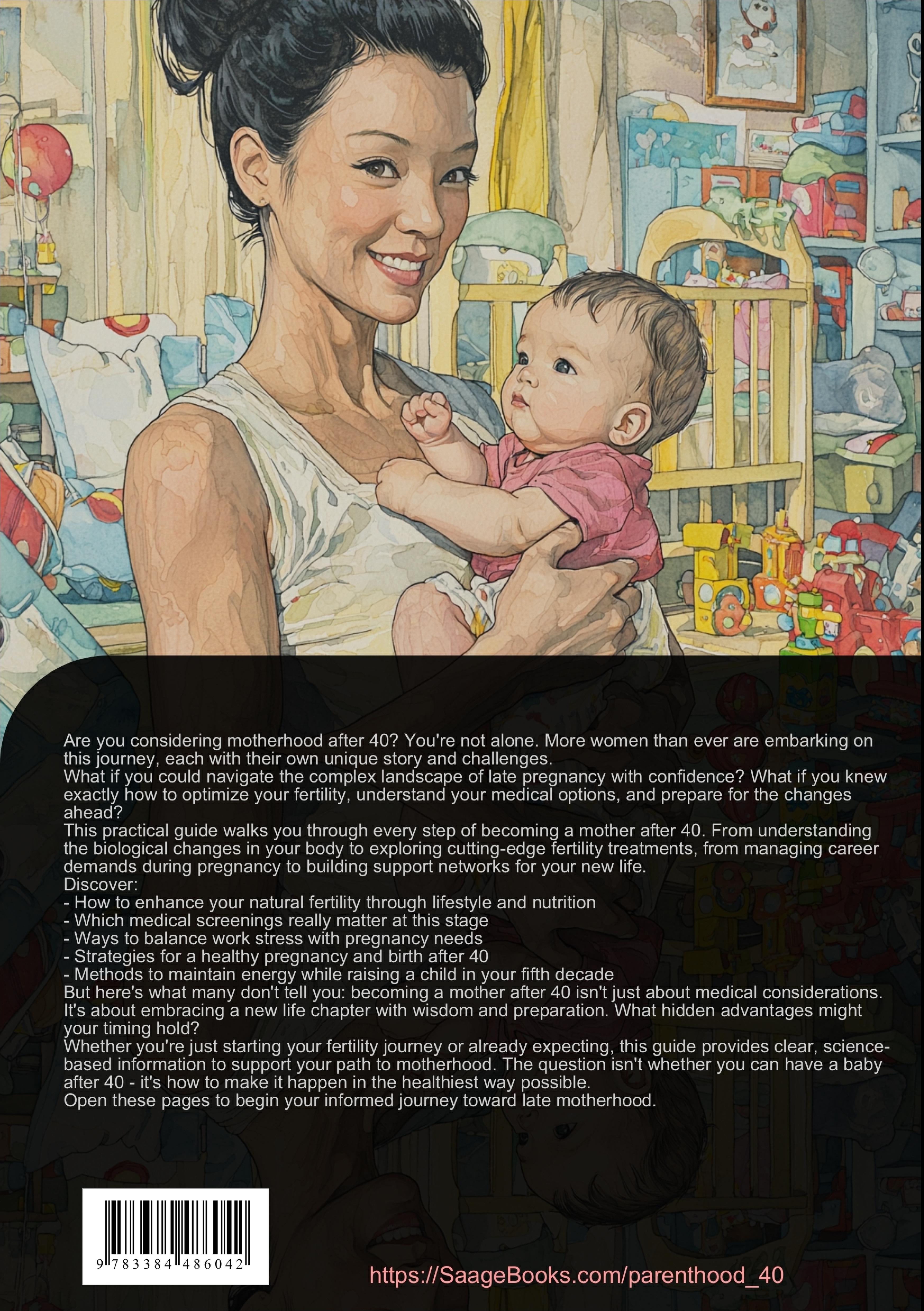 Are you considering motherhood after 40? This practical guide provides comprehensive information for women pursuing pregnancy and motherhood later in life.The book addresses key aspects of late pregnancy, starting with fertility basics: Understanding hormonal changes, egg quality, and fertility windows after 40. Learn about lifestyle modifications and nutritional strategies that can support your fertility journey, along with current medical assistance options including fertility treatments.For women experiencing pregnancy 40+, the guide covers essential medical care, including specialized prenatal screenings and genetic counseling. Discover adapted exercise programs and strategies for managing professional demands while pregnant. Special attention is given to health considerations unique to late mothers, such as preventing gestational diabetes and optimizing placental function.The section on late birth and postpartum period explores birth options for mature mothers, including specific indications for cesarean sections. Find practical advice on physical recovery, breastfeeding at an advanced age, and maintaining emotional well-being.The final chapters focus on life as a late mother, offering guidance on preventive health measures, energy management, and work-life balance. Learn how to build support networks and navigate your new role while maintaining self-care.Written with sensitivity to the unique challenges and opportunities of getting pregnant faster and parenting after 40, this guide provides practical tools and information to support your journey to late motherhood. Each chapter combines medical knowledge with real-world applications, helping you make informed decisions about your path to parenthood.This book was created using innovative technologies such as Artificial Intelligence and specially developed tools - for example, in brainstorming, research, writing, editing, quality assurance, and the design of decorative illustrations.In this way, we want to offer you a particularly coherent, modern, and even higher-quality reading experience.