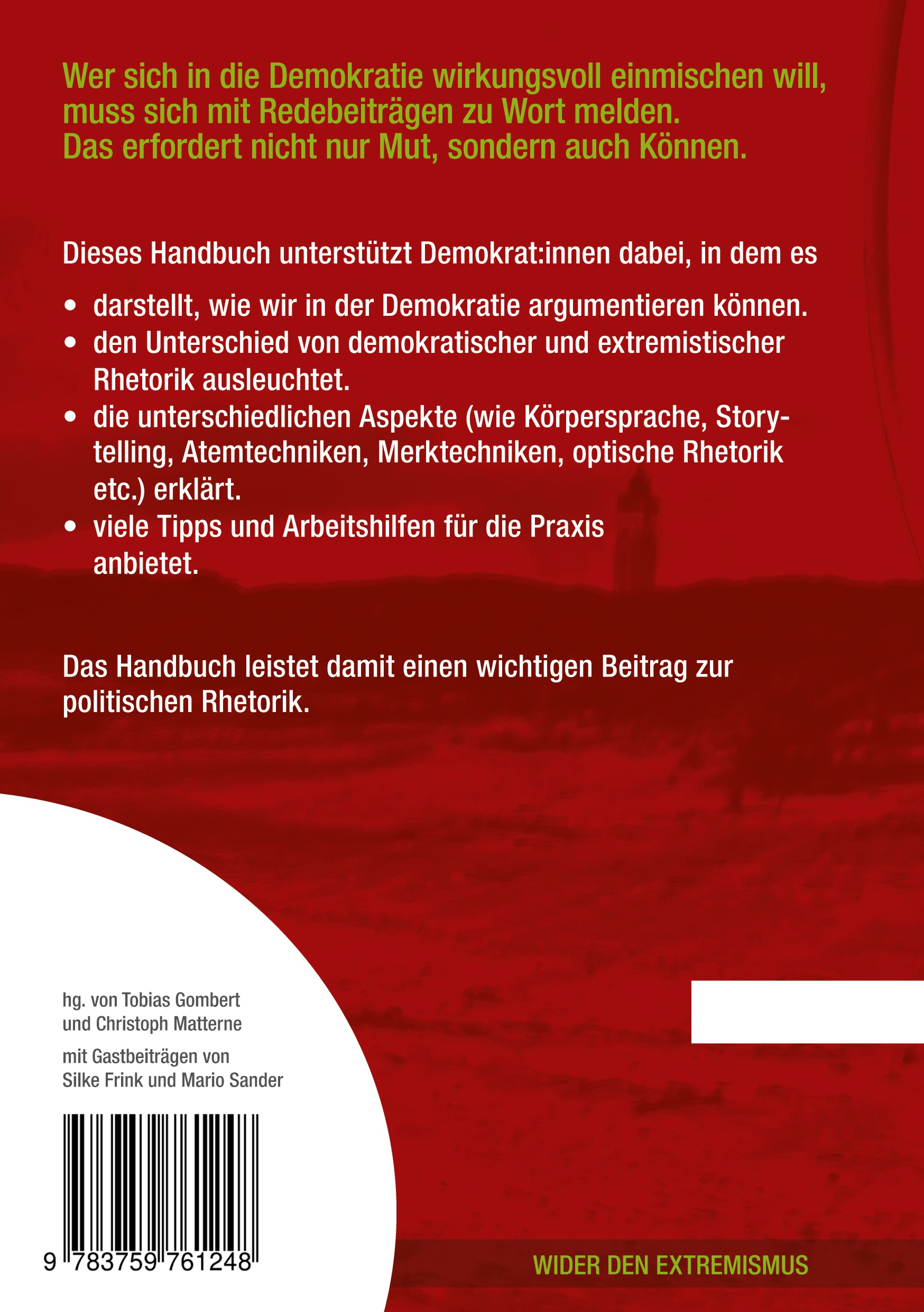| Schlagworte | Argumentation • Argumentation gegen Rechts Ratgeber • besser argumentieren in unfairen Debatten • Demokratie • demokratie leben • Demokratie leben Handbuch • Extremismus • Extremismus bekämpfen • Handbuch • Handbuch Reden halten • Polemik begegnen Sachbuch • politische Aufklärung im Alltag • politischer Aktivismus • Rhetorik • Rhetorik für politische Gespräche • Zivilcourage lernen • Zivilcourage lernen Buch |