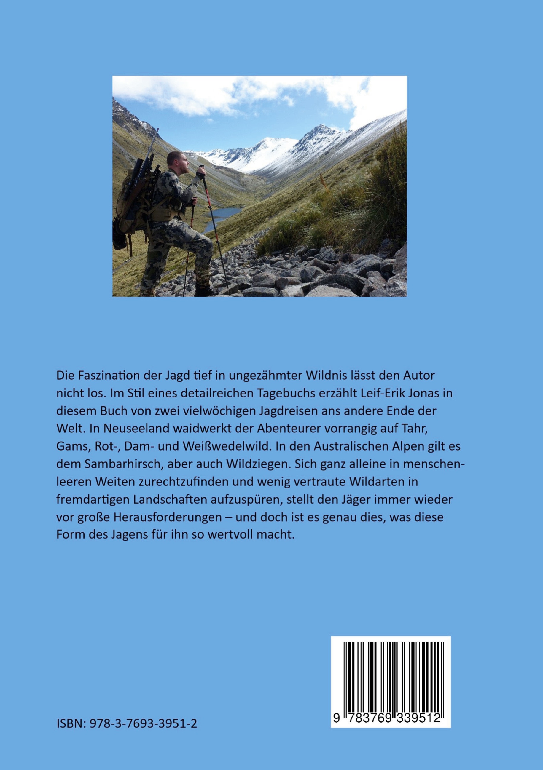 Die Faszination der Jagd tief in ungezähmter Wildnis lässt den Autor nicht los. Im Stil eines detailreichen Tagebuchs erzählt Leif-Erik Jonas in diesem Buch von zwei vielwöchigen Jagdreisen ans andere Ende der Welt. In Neuseeland waidwerkt der Abenteurer vorrangig auf Tahr, Gams, Rot-, Dam- und Weißwedelwild. In den Australischen Alpen gilt es dem Sambarhirsch, aber auch Wildziegen. Sich ganz alleine in menschenleeren Weiten zurechtzufinden und wenig vertraute Wildarten in fremdartigen Landschaften aufzuspüren, stellt den Jäger immer wieder vor große Herausforderungen - und doch ist es genau dies, was diese Form des Jagens für ihn so wertvoll macht.