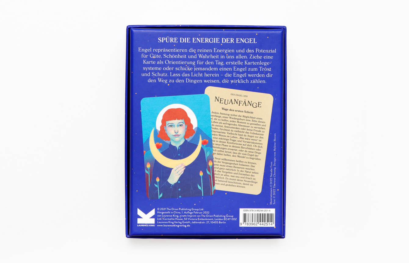 Hier sind Engel keine ätherischen Wesen, sondern moderne Figuren in kräftigen Farben, die auch ein junges Publikum ansprechen und uns einen neuen Zugang zu ihrer Weisheit verschaffen. Wer mit Traurigkeit kämpft, kann denEngel der Tränen rufen, der Engel der Kommunikation unterstützt unsere Verbindung zu geliebten Menschen, und sollten wir Inspiration benötigen, weiß der Engel der Kreativität bestimmt Rat. Ziehen Sie einfach eine Karte als Orientierung für den Tag, erstellen Sie Kartenlegesysteme oder schicken Sie einen Engel an jemanden, der/die eine schwere Zeit durchmacht - die heilenden Kräfte werden sich entfalten. Eine schöne Geschenkidee für Mitmenschen, denen wir Schutz und Glück wünschen!