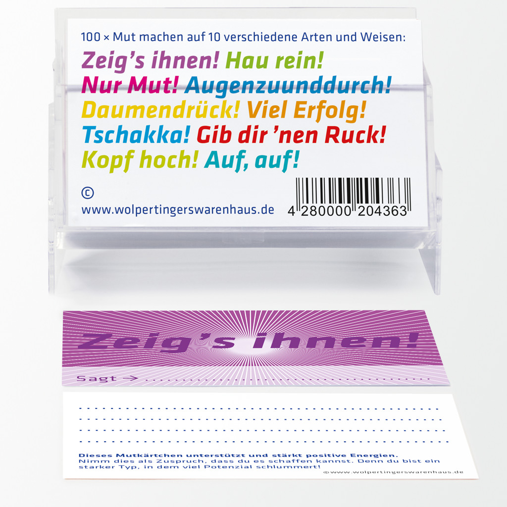 Übrigens: Anders als »Hater«-Kommentare in den Sozialen Medien fordern die Kärtchen den Geber zur Kenntlichmachung seiner Person. Muss nicht, wirkt aber doppelt stark!