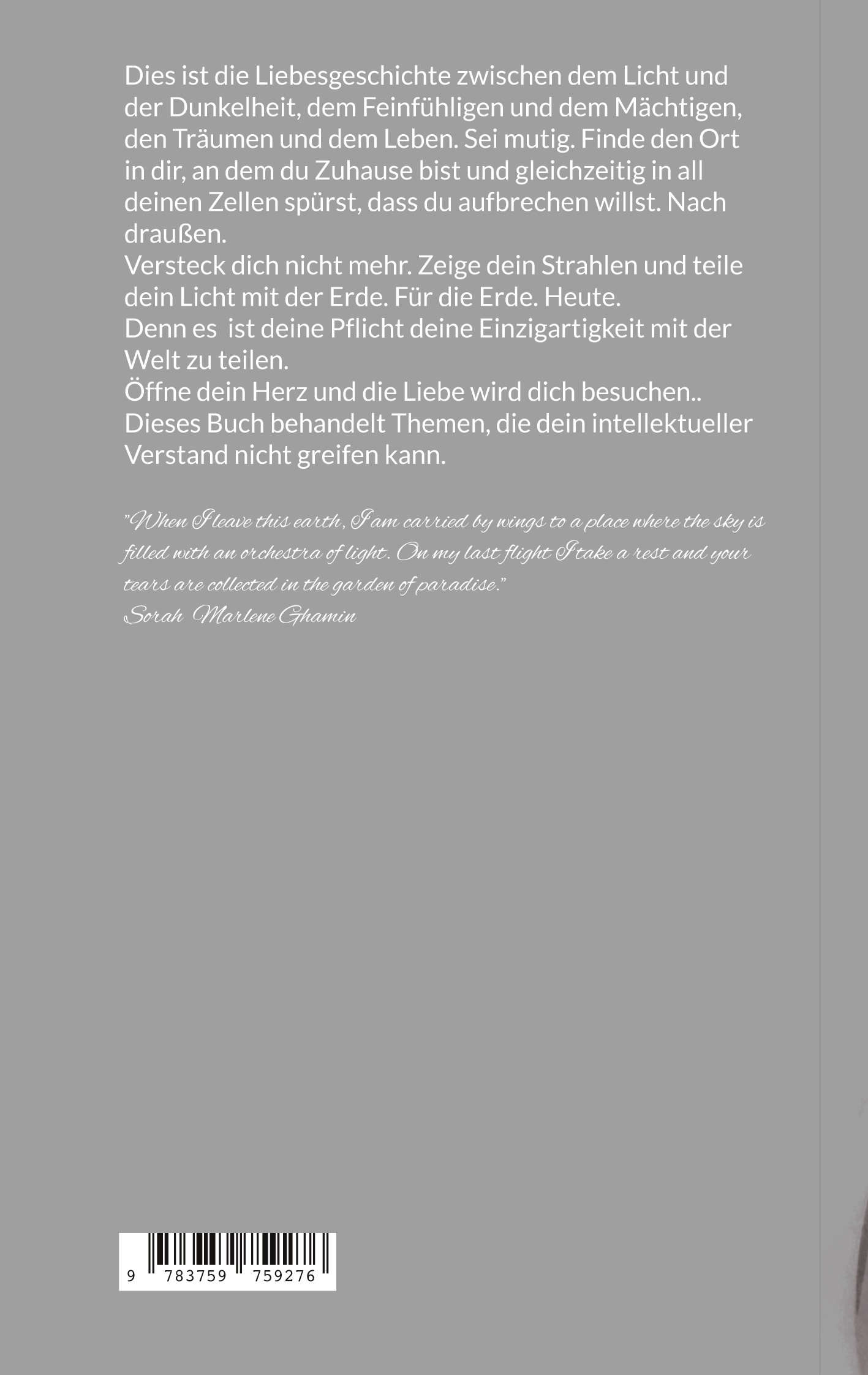 Über den Autor Die Künstlerin, Modedesignerin Sorah Marlene Ghamin arbeitet heute hauptberuflich als spirituelle Life Coachin. Mit ihrer Arbeit möchte sie Menschen erreichen, die sich die wichtigen Fragen über Leben und Tod, Seelenaufgabe und Seelenweg, Heilung, Spiritualität und Transformation stellen und etwas auf der Erde von innen heraus bewegen möchten. Ihre Kunst geben ihrer Persönlichkeitsentwicklungsarbeit eine ganz besonders berührende und unverwechselbare Note. Feinfühligkeit, das Thema Spiritualität, Feinfühligkeit und Vision liegen ihr besonders am Herzen. Sie möchte Menschen berühren auf einer Ebene jenseits des Verstandes. In ihrem Buch "Unter meiner Haut" erzählt sie auf persönliche und bewegende Art und Weise ihren Blickwinkel auf das Thema Verwundbarkeit. Weitere Infos rundum Sorah Marlene Ghamin und ihr Wirken findest du unter https://www.ghamin.com oder https://www.instagram.com/sorahmarleneghamin?igsh=YWZzcndmZ3E2eWsw&utm_source=qr