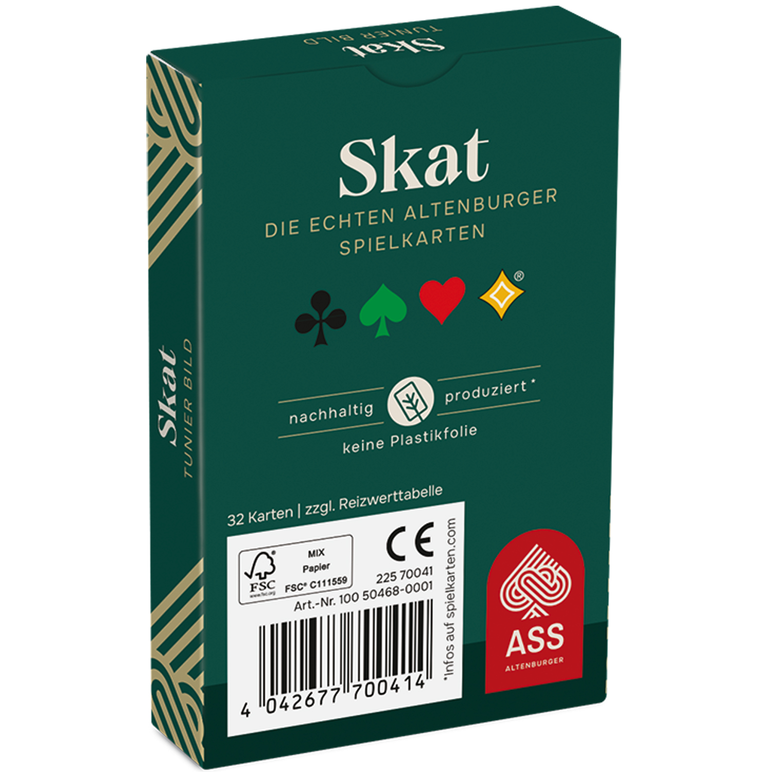 Skat ist das beliebteste Kartenspiel der Deutschen für drei oder vier Spieler und wurde um 1820 in der "Skatstadt" Altenburg erfunden. Im Turnierbild wurden die beiden in Deutschland vorrangig gespielten Bilder, das deutsche und das französische Bild vereint. Das Spiel ist bei diesem Produkt mit 32 Karten im Format 59 x 91 mm in Faltschachtel verpackt. Ab Oktober 2019 in JEDEM Skatspiel: Onlinespiel-Gutschein von Skatpalast.de im Wert von über 7 Euro! GRATIS in JEDEM Spiel! Online vs. Offline - wir sind davon überzeugt, dass dies sich nicht gegenseitig ausschließen muss. Hauptsache es wird gespielt! Oftmals spielen Leute, die unterwegs gern mal eine Runde am Handy zocken, daheim in geselliger Runde ganz klassisch Skat. Denn das Lebensgefühl beim gemeinsamen Spiel kann nichts ersetzen. Wir sind die Experten für analoge Skatspiele - der Skatpalast für digitale. Aus diesem Grund kooperieren ASS Altenburger und der Skatpalast mit dem Ziel, der gesamten Community einen bestmöglichen Zugriff auf analoge und digitale Skat-Spielewelten zu gewähren.