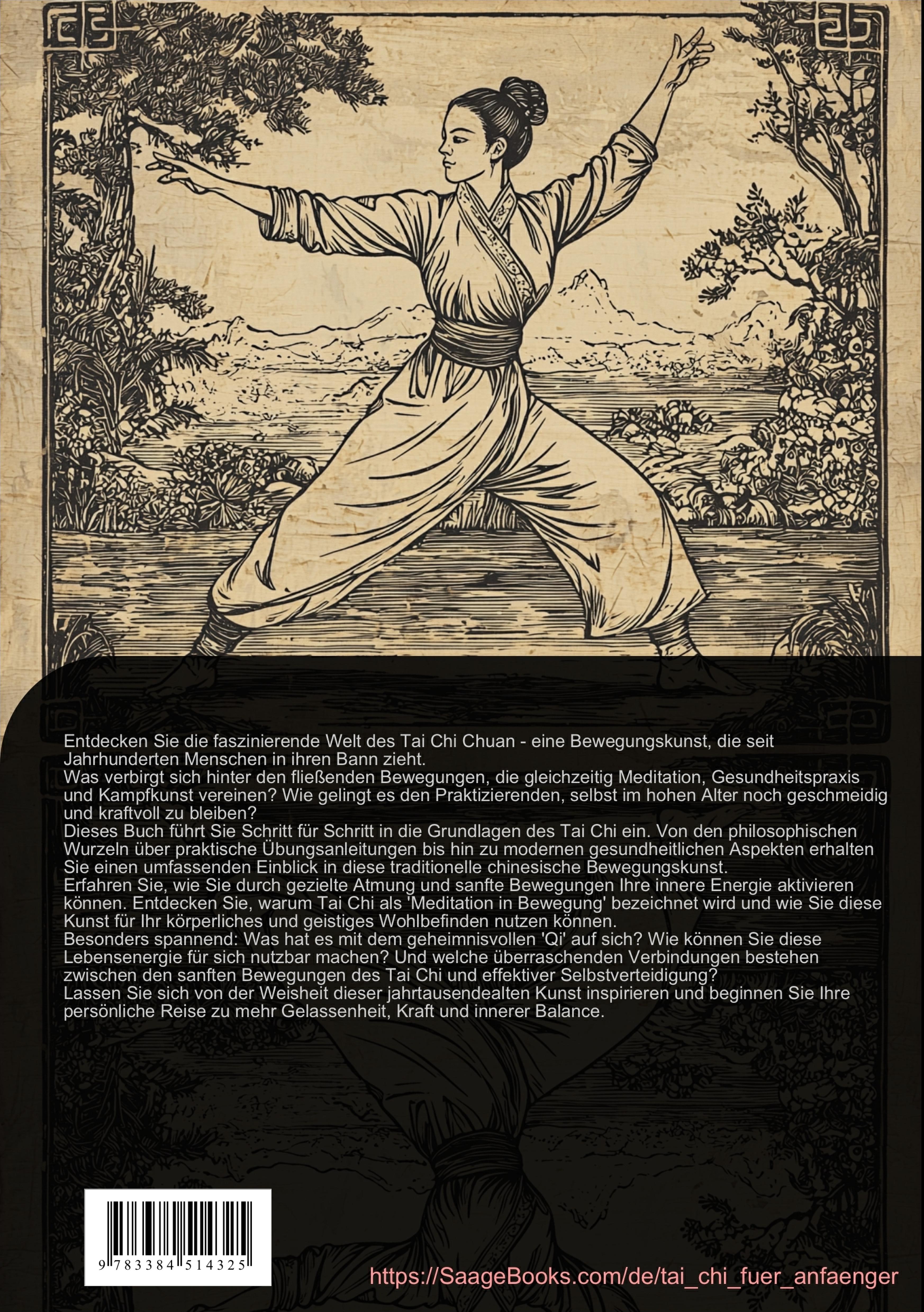 Dieses Tai Chi Buch bietet einen strukturierten und praxisorientierten Einstieg in die faszinierende Welt der inneren Kampfkunst. Als umfassender Ratgeber für Tai Chi für Anfänger vermittelt es sowohl die theoretischen Grundlagen als auch praktische Übungsanleitungen.Die Leser lernen die historischen Wurzeln und philosophischen Grundlagen des Tai Chi Chuan kennen. Das Werk erklärt die fundamentalen Prinzipien der Bewegung, Atmung und Körperhaltung, die für die korrekte Ausführung dieser chinesischen Kampfkunst essentiell sind.Ein besonderer Fokus liegt auf der schrittweisen Einführung in die Basis-Übungsformen. Die Kombination aus Tai Chi und Qi Gong wird ausführlich behandelt, wobei die energetischen Aspekte und meditativen Elemente besondere Berücksichtigung finden. Detaillierte Beschreibungen der Bewegungsabläufe werden durch zahlreiche Illustrationen ergänzt.Der praktische Teil umfasst:- Vorbereitende Übungen und Aufwärmsequenzen- Grundlegende Handtechniken und Schrittfolgen- Integration von Qi Gong Elementen- Kurze Bewegungsabläufe für Einsteiger- Übungen zur Energielenkung und AtemsteuerungDarüber hinaus werden die gesundheitlichen Aspekte des Tai Chi ausführlich beleuchtet. Die positiven Wirkungen auf Körper und Geist, wie Gleichgewichtsstärkung, Stressabbau und Konzentrationssteigerung, werden wissenschaftlich fundiert dargestellt.Das Buch schließt mit praktischen Hinweisen zum Trainingsaufbau und zur Gestaltung regelmäßiger Übungseinheiten. Anfänger erhalten alle notwendigen Informationen, um Tai Chi als ganzheitliche Bewegungskunst zu verstehen und in ihren Alltag zu integrieren.Dieses Buch wurde unter Verwendung innovativer Technologien wie Künstlicher Intelligenz sowie eigens entwickelter Tools erstellt - etwa bei der Ideenfindung, der Recherche, dem Schreiben, dem Lektorat, der Qualitätssicherung und der Gestaltung dekorativer Illustrationen.So möchten wir Ihnen ein besonders stimmiges, modernes und noch hochwertigeres Leseerlebnis bieten.