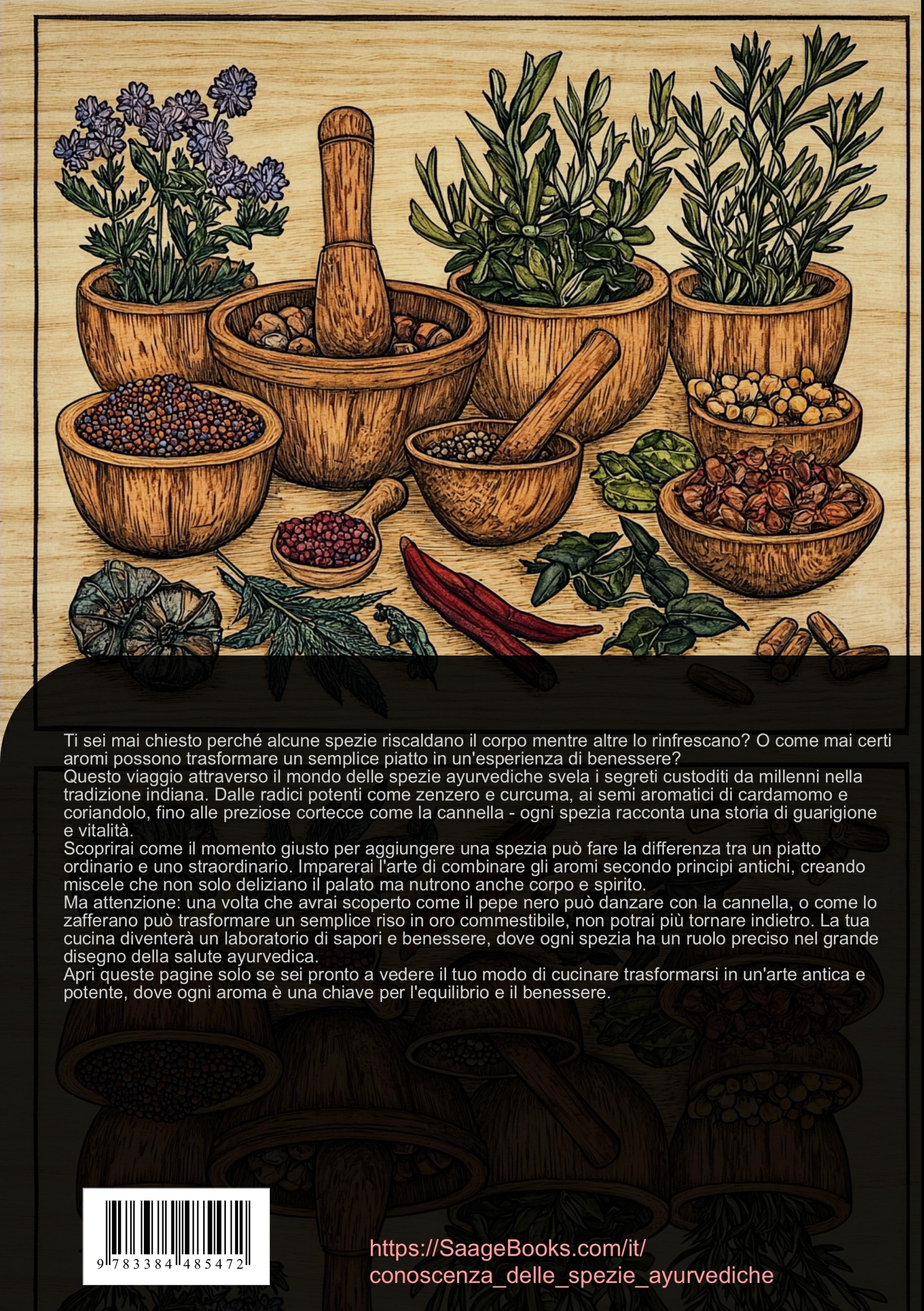 Scoprite il mondo affascinante delle spezie ayurvediche in questa guida pratica e dettagliata che vi accompagnerà attraverso l'antica saggezza della medicina tradizionale indiana.Il libro esplora in profondità le proprietà delle erbe e spezie, partendo dai sei sapori fondamentali dell'Ayurveda e dalle loro qualità energetiche. Vengono illustrati i principi base della scienza delle spezie ayurvediche, incluse le loro caratteristiche termiche e le proprietà curative.La guida è strutturata in sezioni chiare che coprono:- Le basi della scienza delle spezie ayurvediche- La classificazione dettagliata di radici aromatiche, semi, cortecce e fiori- Le tecniche tradizionali di preparazione e conservazione- I principi per creare miscele di spezie equilibrateParticolare attenzione viene dedicata alle singole erbe aromatiche e piante medicinali, con approfondimenti su:- Zenzero, curcuma e altre radici- Cardamomo, coriandolo e semi aromatici- Cannella, chiodi di garofano e spezie pregiateIl testo offre conoscenze pratiche su:- Metodi di tostatura e macinatura- Tempistiche di aggiunta delle spezie- Dosaggi appropriati- Preparazione di paste aromaticheQuesta guida rappresenta uno strumento prezioso per chi desidera esplorare i sapori e le proprietà benefiche delle spezie nella cucina ayurvedica, combinando tradizione e applicazioni moderne per il benessere quotidiano.Questo libro è stato creato utilizzando tecnologie innovative come l'Intelligenza Artificiale e strumenti sviluppati appositamente - ad esempio, nella ricerca di idee, nella ricerca, nella scrittura, nella redazione, nel controllo qualità e nella progettazione di illustrazioni decorative.In questo modo, vogliamo offrirvi un'esperienza di lettura particolarmente coerente, moderna e di qualità ancora superiore.