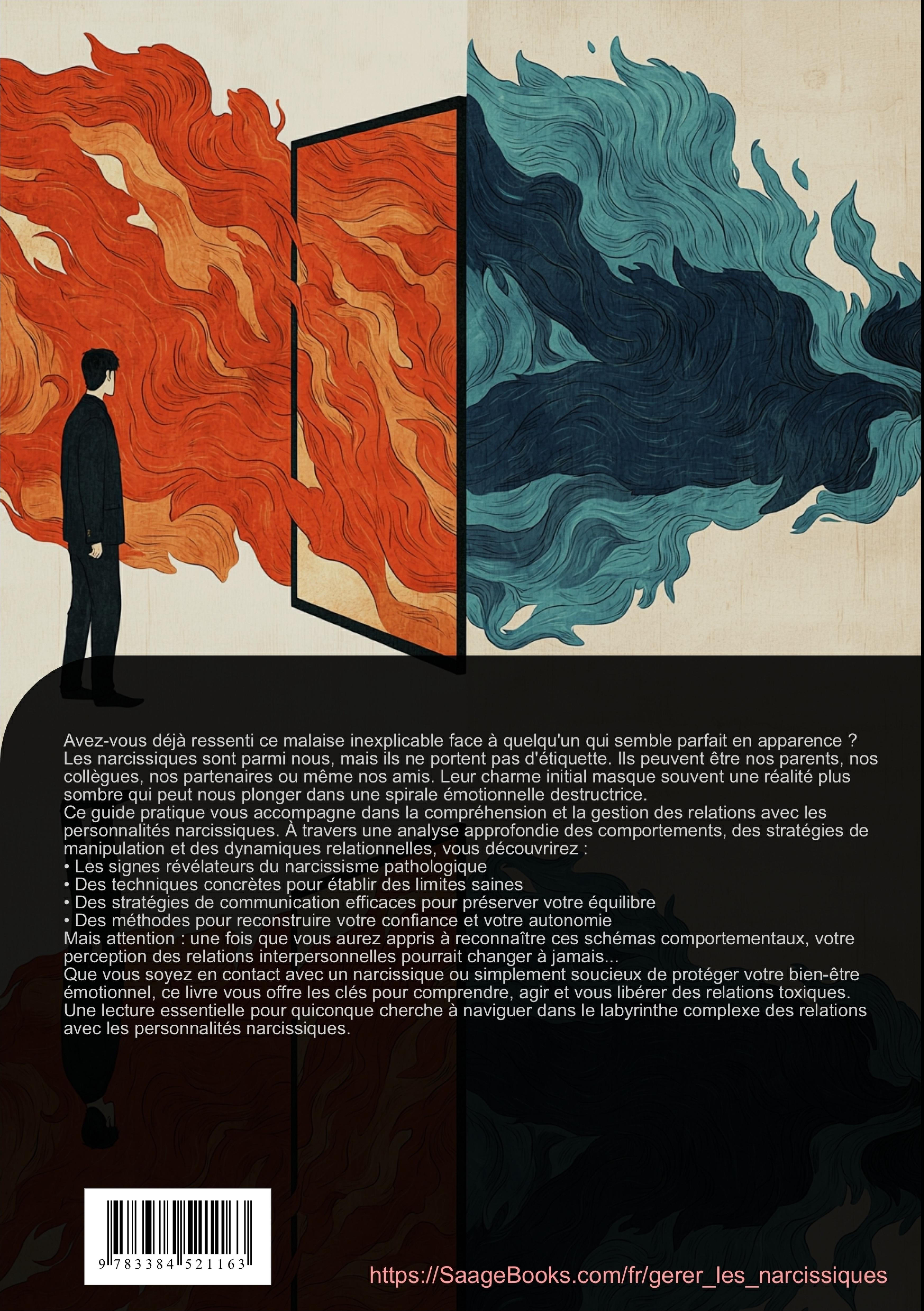 Ce guide pratique offre une analyse approfondie du trouble de la personnalité narcissique et fournit des stratégies concrètes pour gérer les relations avec les narcissiques.La première partie se concentre sur la reconnaissance des comportements narcissiques, explorant les différentes manifestations du narcissisme, les signaux d'alarme précoces et les dynamiques familiales. Vous apprendrez à démasquer les narcissiques et à reconnaître les signes du narcissisme caché.La deuxième section aborde le développement de mécanismes de protection essentiels pour vivre avec un narcissique. Elle détaille les techniques de distanciation émotionnelle, les stratégies de communication efficaces et les méthodes pour renforcer sa résilience face aux personnes toxiques.La gestion des relations narcissiques est explorée en profondeur, tant dans le contexte professionnel que social. Des outils pratiques sont proposés pour éviter les narcissiques ou gérer la relation avec les narcissiques de manière constructive.Une attention particulière est portée aux processus de guérison, notamment après une séparation des narcissiques. Le livre examine les stratégies de traitement des traumatismes, le développement personnel et la reconstruction.La dernière partie analyse les dimensions sociétales du narcissisme dans les relations, explorant l'influence culturelle, les impacts sociaux et les approches préventives pour repousser les narcissiques.Ce guide offre une approche méthodique pour comprendre et gérer le narcissisme dans les relations, soutenue par des données concrètes et des stratégies applicables au quotidien.Ce livre a été créé en utilisant des technologies innovantes telles que l'Intelligence Artificielle ainsi que des outils spécialement développés - par exemple, pour la recherche d'idées, la recherche d'informations, l'écriture, la relecture, l'assurance qualité et la conception d'illustrations décoratives.Ainsi, nous souhaitons vous offrir une expérience de lecture particulièrement cohérente, moderne et d'une qualité encore supérieure.
