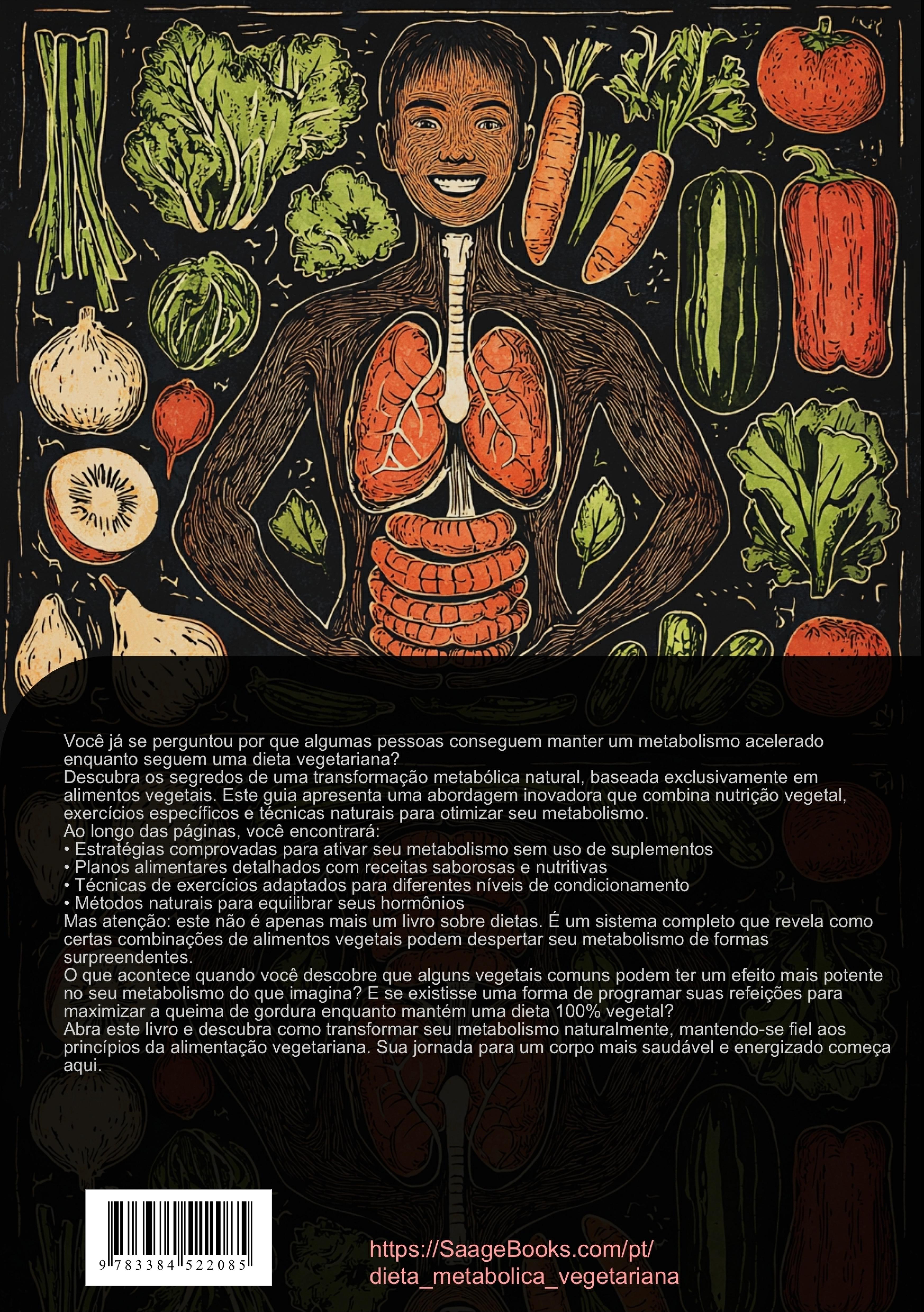 Descubra como otimizar seu metabolismo de forma natural através de uma alimentação baseada em plantas. Este guia abrangente apresenta uma abordagem científica e prática para acelerar seu metabolismo de maneira saudável e sustentável.O livro está estruturado em cinco seções principais:1. Fundamentos do Metabolismo Vegetariano- Compreenda os processos metabólicos biológicos- Explore as particularidades da nutrição vegetal- Aprenda sobre otimização metabólica natural2. Implementação Prática- Organize sua cozinha e planeje suas compras- Estruture sua rotina diária- Integre exercícios físicos adequados3. Plano Alimentar Detalhado- Receitas para todas as refeições do dia- Opções de lanches nutritivos- Guia completo de hidratação4. Otimização Metabólica- Uso de aceleradores naturais do metabolismo- Ajuste do ritmo circadiano- Técnicas de ativação metabólica5. Sucesso a Longo Prazo- Programa de 30 dias- Estratégias de estabilização- Integração ao estilo de vidaCada capítulo inclui gráficos informativos, tabelas nutricionais e planos práticos para ajudar na implementação. O guia oferece soluções para diferentes necessidades e objetivos, considerando fatores como rotina diária, preferências alimentares e nível de atividade física.Aprenda a potencializar seu metabolismo através de alimentos vegetais, técnicas naturais e exercícios específicos, alcançando resultados duradouros de forma saudável e equilibrada.Este livro foi criado com o uso de tecnologias inovadoras, como Inteligência Artificial e ferramentas especialmente desenvolvidas - por exemplo, na geração de ideias, pesquisa, escrita, edição, garantia de qualidade e design de ilustrações decorativas.Desta forma, queremos oferecer-lhe uma experiência de leitura particularmente coerente, moderna e de ainda maior qualidade.