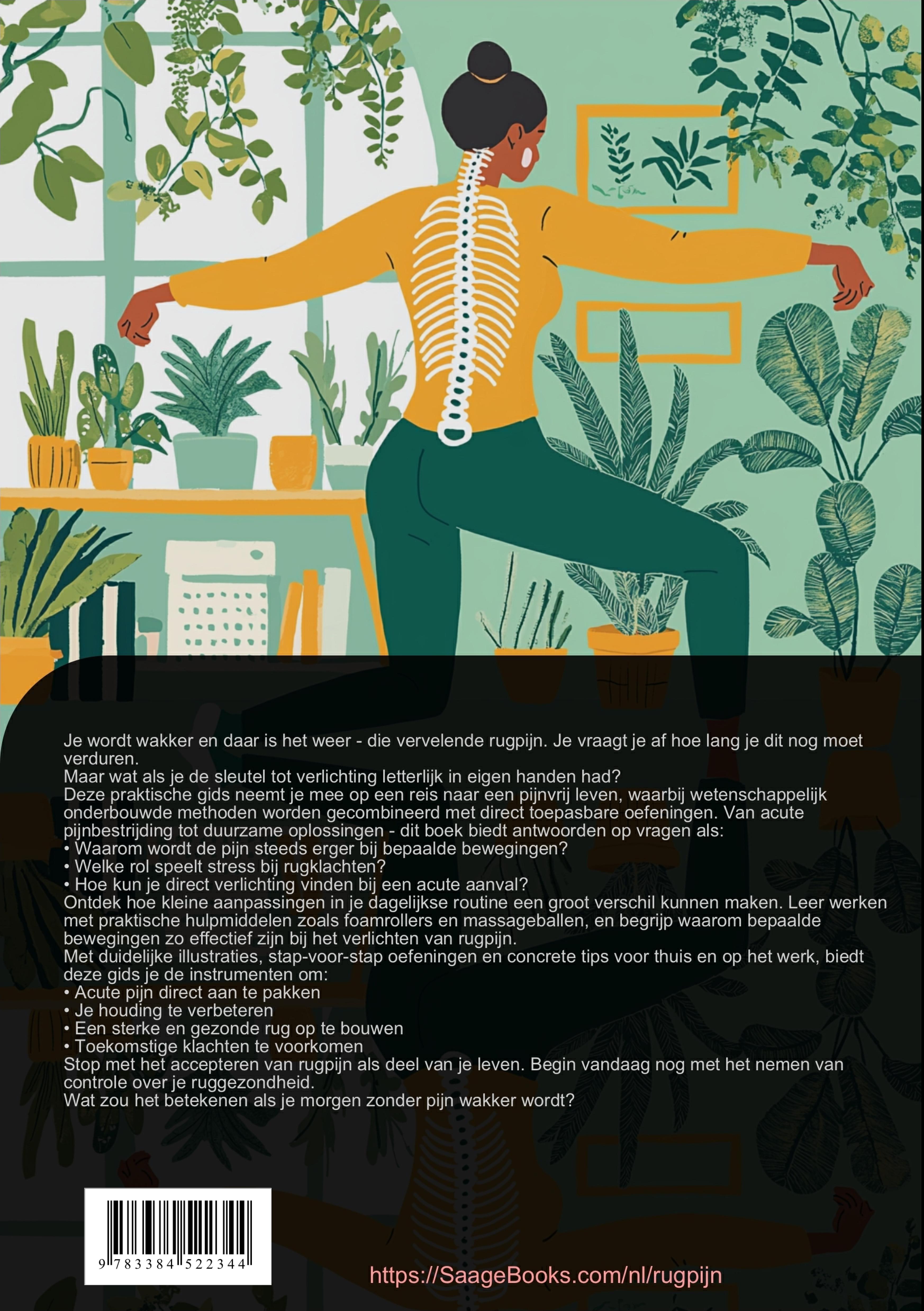 Deze praktische gids biedt uitgebreide informatie over de behandeling en preventie van rugklachten, met speciale aandacht voor rugpijn in de onderrug.Het boek behandelt systematisch de verschillende aspecten van rugpijn:- Gedetailleerde uitleg over oorzaken, waaronder fysieke belasting, psychische factoren en anatomische aspecten- Preventieve maatregelen zoals houdingscorrectie en ergonomische aanpassingen- Effectieve behandelmethoden bij acute rugklachten- Specifieke oefenprogramma's voor verschillende types rugpijnPraktische toepassingen komen uitgebreid aan bod:- Het gebruik van hulpmiddelen zoals de rugpijn roller en speciale ballen voor zelfmassage- Cupping-technieken voor pijnverlichting- Oefeningen met machines en apparatuur- Doelgerichte stretching en mobilisatieBijzondere aandacht gaat uit naar:- Directe pijnverlichting bij acute klachten- Opbouwende oefeningen voor langetermijnherstel- Leefstijlaanpassingen voor duurzaam resultaat- Zelfhulptechnieken voor thuisgebruikDe gids bevat duidelijke illustraties en stap-voor-stap instructies voor:- Correct uitvoeren van oefeningen- Gebruik van hulpmiddelen- Herkennen van waarschuwingssignalen- Aanpassing van dagelijkse activiteitenGeschikt voor mensen met acute of chronische rugklachten en voor wie rugproblemen wil voorkomen.Dit boek is tot stand gekomen met behulp van innovatieve technologieën zoals Kunstmatige Intelligentie en speciaal ontwikkelde tools - bijvoorbeeld bij het bedenken van ideeën, onderzoek, schrijven, redigeren, kwaliteitsborging en het ontwerpen van decoratieve illustraties.Op deze manier willen wij u een bijzonder coherente, moderne en nog hoogwaardigere leeservaring bieden.