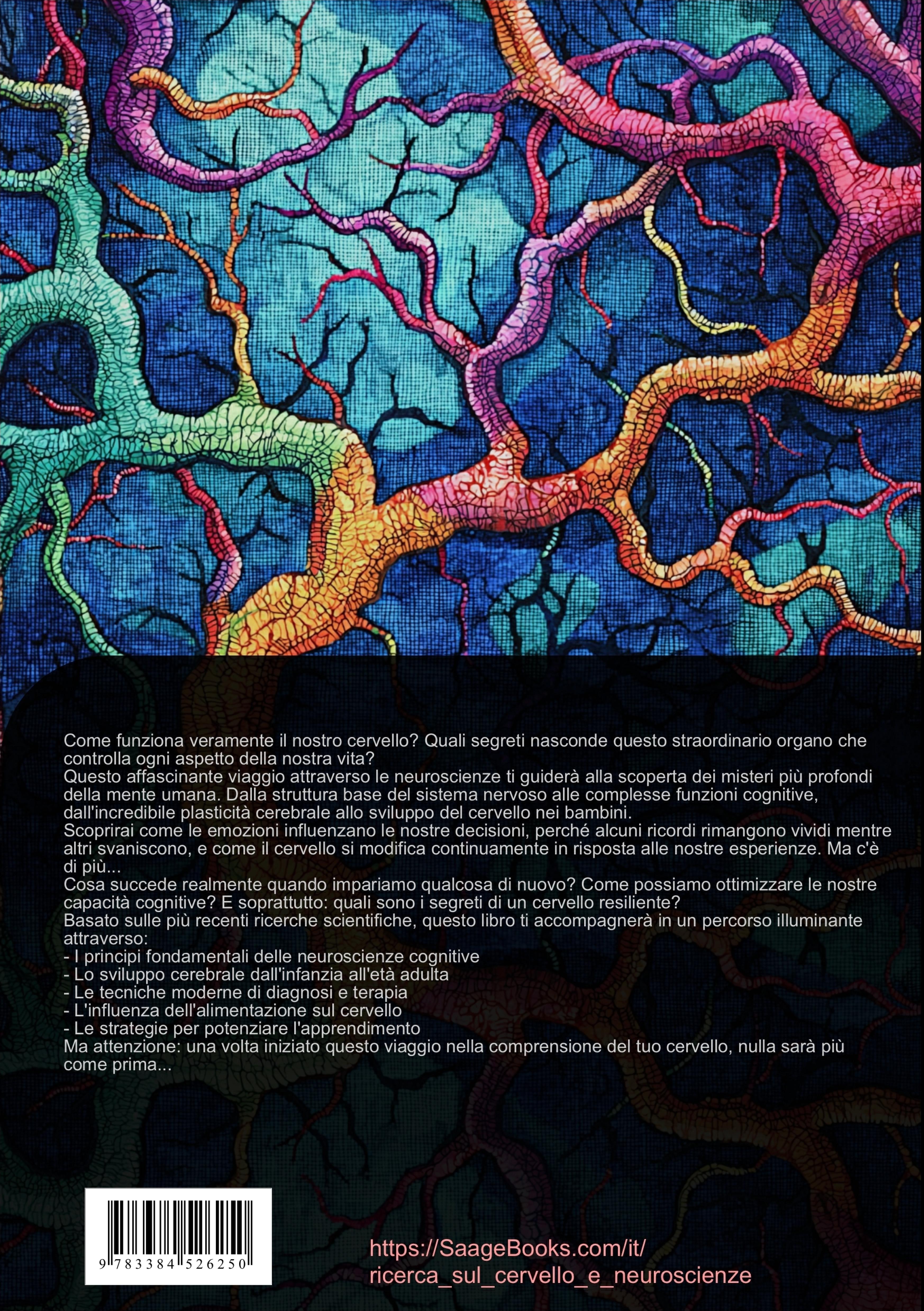 Questo libro offre una panoramica approfondita delle neuroscienze moderne, esplorando il funzionamento del cervello umano attraverso diverse prospettive scientifiche.Il testo si articola in cinque sezioni principali che coprono:1. I principi fondamentali delle neuroscienze, inclusi:- L'organizzazione del sistema nervoso- I processi biochimici cerebrali- Le basi delle neuroscienze cognitive e applicate2. Lo sviluppo cerebrale nelle diverse fasi della vita:- La crescita del cervello durante l'infanzia- Le modificazioni cerebrali nell'adolescenza- Il concetto di plasticità cerebrale3. Medicina del cervello e salute:- Prevenzione e gestione dei danni cerebrali- Metabolismo ed energia cerebrale- Nutrizione e funzionalità del cervello4. Mente ed emozioni:- L'intelligenza emotiva- Il pensiero positivo- Le peculiarità del cervello autistico5. Ottimizzazione delle funzioni cerebrali:- Strategie di apprendimento- Tecniche di allenamento mentale- L'impatto del digitale sul cervelloIl volume integra le più recenti scoperte nel campo delle neuroscienze cognitive con applicazioni pratiche, offrendo una comprensione dettagliata di come funziona il cervello, dalla mente al cervello plastico, dallo sviluppo cerebrale del bambino alle moderne tecniche di encefalogramma.Arricchito da grafici, illustrazioni e casi studio, questo libro sul cervello umano rappresenta una risorsa per studenti, professionisti e chiunque sia interessato a comprendere meglio il funzionamento del nostro organo più complesso.Questo libro è stato creato utilizzando tecnologie innovative come l'Intelligenza Artificiale e strumenti sviluppati appositamente - ad esempio, nella ricerca di idee, nella ricerca, nella scrittura, nella redazione, nel controllo qualità e nella progettazione di illustrazioni decorative.In questo modo, vogliamo offrirvi un'esperienza di lettura particolarmente coerente, moderna e di qualità ancora superiore.
