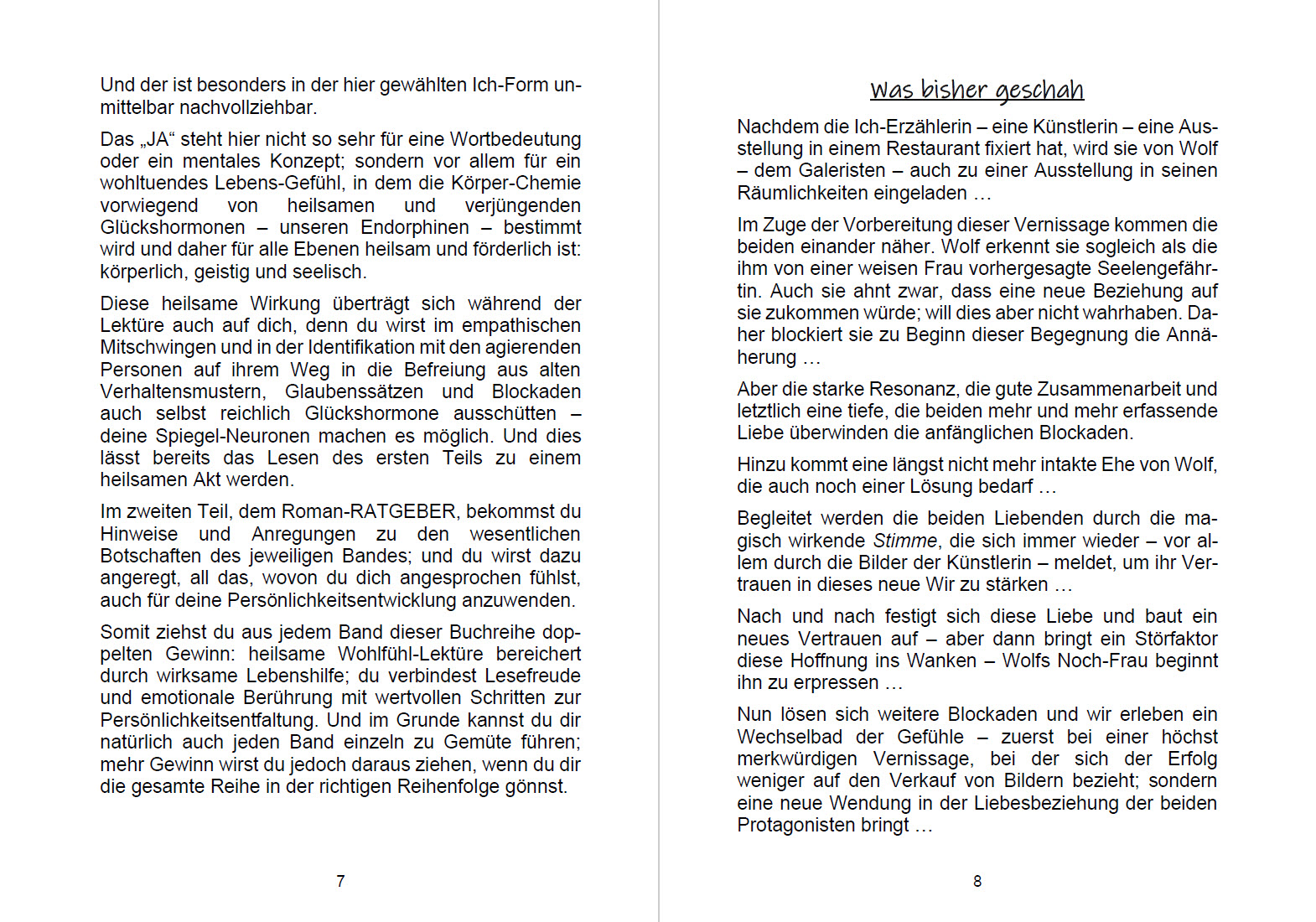 Nach einem ersten, belletristischen Roman-Teil findest du im zweiten Teil jeweils einen alltagstauglichen Lebenshilfe-Ratgeber. Darin bekommst du zur jeweiligen Handlung passend eine Reihe wertvoller Tipps und Anregungen für ein glücklicheres, zufriedeneres, gesünderes, erfüllteres und erfolgreicheres Leben.