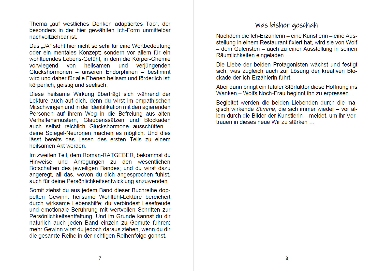 Nach einem ersten, belletristischen Roman-Teil findest du im zweiten Teil jeweils einen alltagstauglichen Lebenshilfe-Ratgeber. Darin bekommst du zur jeweiligen Handlung passend eine Reihe wertvoller Tipps und Anregungen für ein glücklicheres, zufriedeneres, gesünderes, erfüllteres und erfolgreicheres Leben.