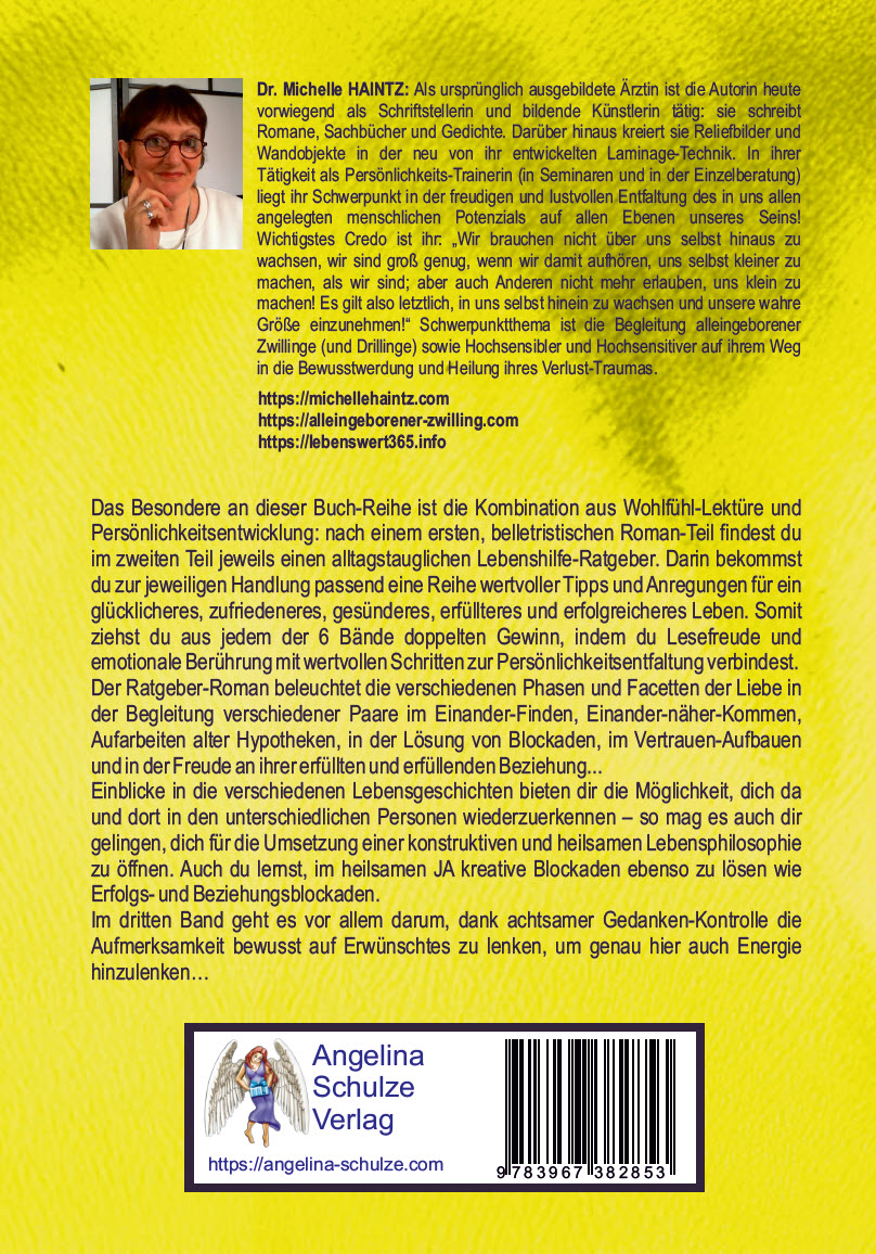 Gönne dir auch den 3. Teil dieses 6-bändigen Ratgeber-Romanes und erlebe doppelten Gewinn, indem du Lesefreude und emotionale Berührung mit wertvollen Schritten zur Persönlichkeitsentfaltung verbindest.