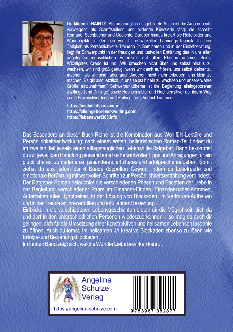 Gönne dir auch den 5. Teil dieses 6-bändigen Ratgeber-Romanes und erlebe doppelten Gewinn, indem du Lesefreude und emotionale Berührung mit wertvollen Schritten zur Persönlichkeitsentfaltung verbindest.