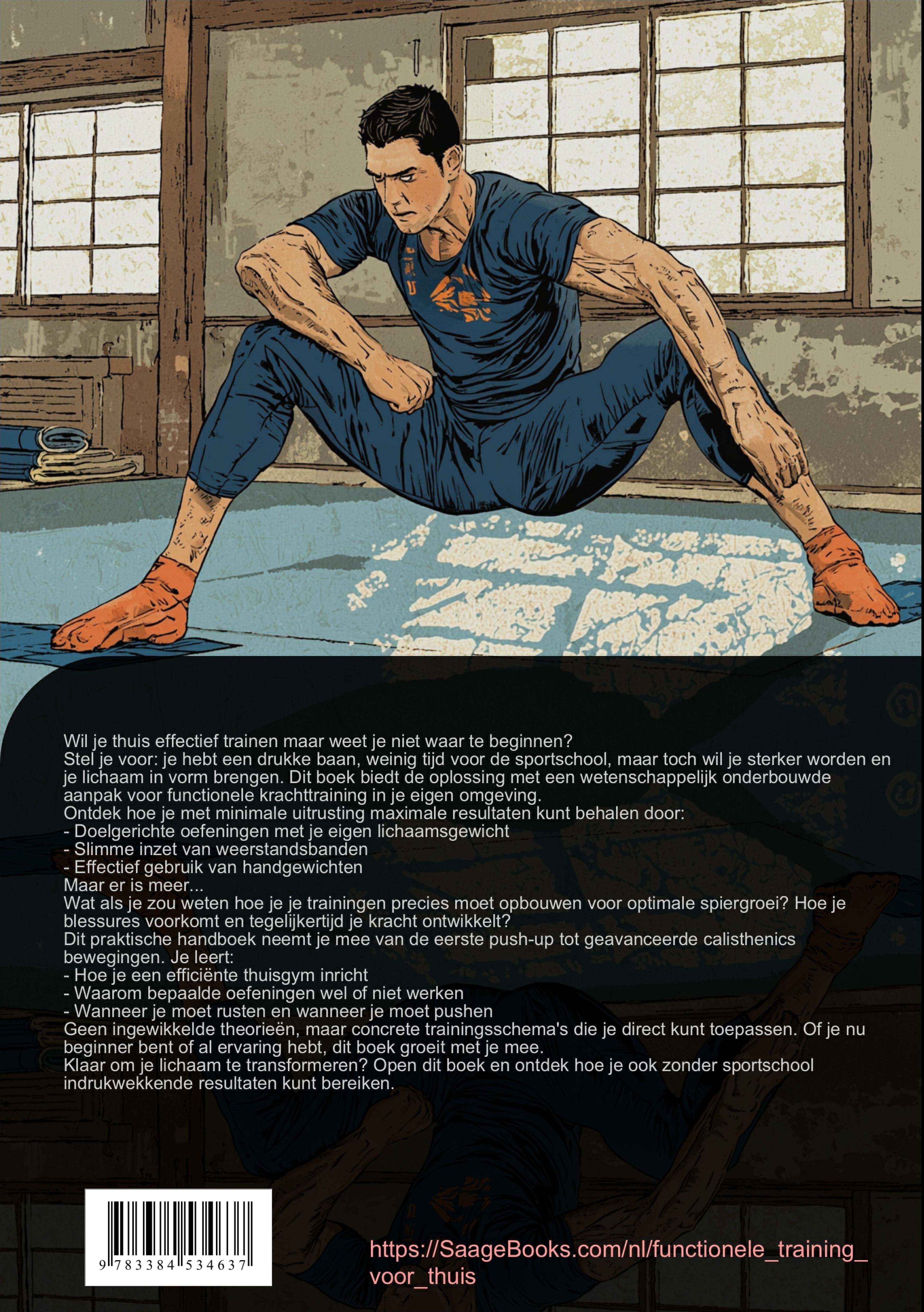 Ontdek hoe je effectief thuis kunt trainen met deze praktische gids voor functionele krachttraining. Dit boek biedt een grondige introductie in verschillende trainingsmethoden die je in je eigen omgeving kunt toepassen.De focus ligt op drie hoofdgebieden:- Calisthenics (training met eigen lichaamsgewicht)- Training met weerstandsbanden- Oefeningen met handgewichtenJe leert stap voor stap:- Hoe je een efficiënte trainingsruimte thuis inricht- De juiste uitvoering van basisoefeningen en gevorderde technieken- Het opstellen van effectieve trainingsschema's- Methoden voor spieropbouw en krachttoename- Technieken voor het verbeteren van stabiliteit en mobiliteitSpeciale aandacht gaat uit naar:- Functionele bewegingspatronen- Correcte techniek en houding- Progressieve belastingsopbouw- Periodisering van training- Herstel en blessurepreventieGeschikt voor zowel beginners als gevorderden, met:- Duidelijke instructies en oefenvariaties- Aanpasbare trainingsschema's- Tips voor optimale resultaten- Richtlijnen voor veilig trainenOf je nu start met krachttraining thuis of je huidige routine wilt verbeteren, deze gids biedt praktische handvatten voor het bereiken van je fitnessdoelen. Met speciale aandacht voor zowel mannelijke als vrouwelijke sporters en verschillende conditieniveaus.Leer hoe je met minimale apparatuur maximale resultaten kunt behalen en bouw aan een sterker, fitter lichaam - gewoon vanuit huis.Dit boek is tot stand gekomen met behulp van innovatieve technologieën zoals Kunstmatige Intelligentie en speciaal ontwikkelde tools - bijvoorbeeld bij het bedenken van ideeën, onderzoek, schrijven, redigeren, kwaliteitsborging en het ontwerpen van decoratieve illustraties.Op deze manier willen wij u een bijzonder coherente, moderne en nog hoogwaardigere leeservaring bieden.