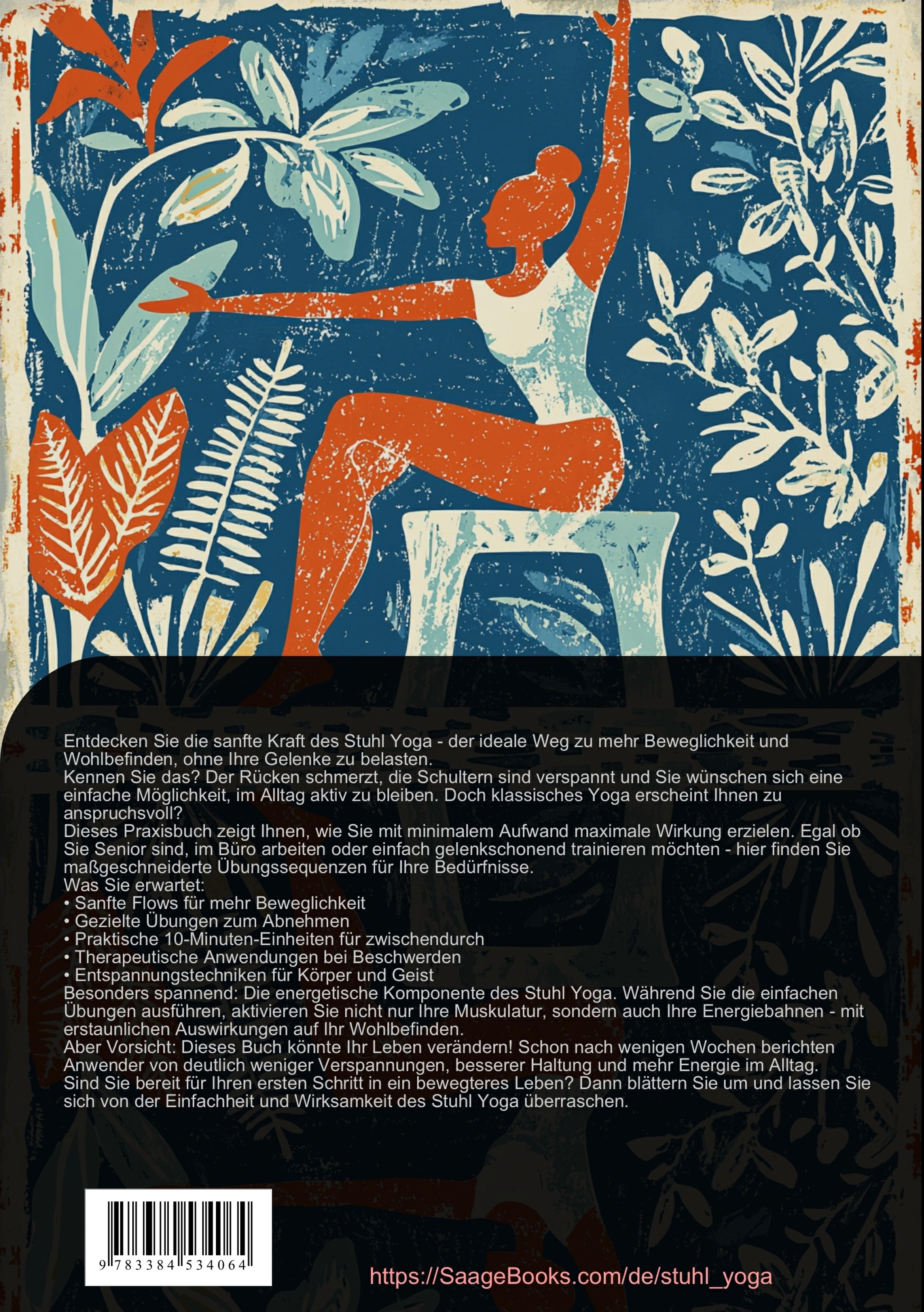 Entdecken Sie die sanfte und effektive Welt des Stuhl Yoga - eine besonders gelenkschonende Form des Yoga, die sich perfekt für Senioren und Menschen mit eingeschränkter Beweglichkeit eignet.Dieses praxisorientierte Buch führt Sie Schritt für Schritt durch die Grundlagen des Yoga auf dem Stuhl und zeigt Ihnen, wie Sie mit einfachen Flows und Asanas Ihre Beweglichkeit verbessern können. Die vorgestellten Übungen sind speziell für die Ausführung im Sitzen konzipiert und können problemlos zuhause oder im Büro praktiziert werden.Die Inhalte umfassen:- Grundlegende Atemtechniken für mehr Entspannung und Energie- Sanfte Aufwärmübungen zur Mobilisation- Klassische Asanas in der Stuhlvariante- Spezielle Übungssequenzen für Senioren über 60- 5-Minuten-Einheiten für zwischendurch- Übungen zur Gewichtsreduktion und Stoffwechselaktivierung- Therapeutische Anwendungen für verschiedene BeschwerdenBesonderer Fokus liegt auf:- Gelenkschonenden Bewegungsabläufen- Altersgerechten Übungsfolgen- Präventiven Maßnahmen für die Rückengesundheit- Entspannungstechniken im SitzenMit diesem praktischen Trainingsplan können Sie:- Ihre Beweglichkeit systematisch verbessern- Verspannungen lösen- Die Körperhaltung optimieren- Den Stoffwechsel anregen- Stress abbauenEgal ob Sessel Yoga für Senioren oder Stuhl Yoga im Büro - die vorgestellten Übungen lassen sich leicht in den Alltag integrieren und an individuelle Bedürfnisse anpassen.Dieses Buch wurde unter Verwendung innovativer Technologien wie Künstlicher Intelligenz sowie eigens entwickelter Tools erstellt - etwa bei der Ideenfindung, der Recherche, dem Schreiben, dem Lektorat, der Qualitätssicherung und der Gestaltung dekorativer Illustrationen.So möchten wir Ihnen ein besonders stimmiges, modernes und noch hochwertigeres Leseerlebnis bieten.