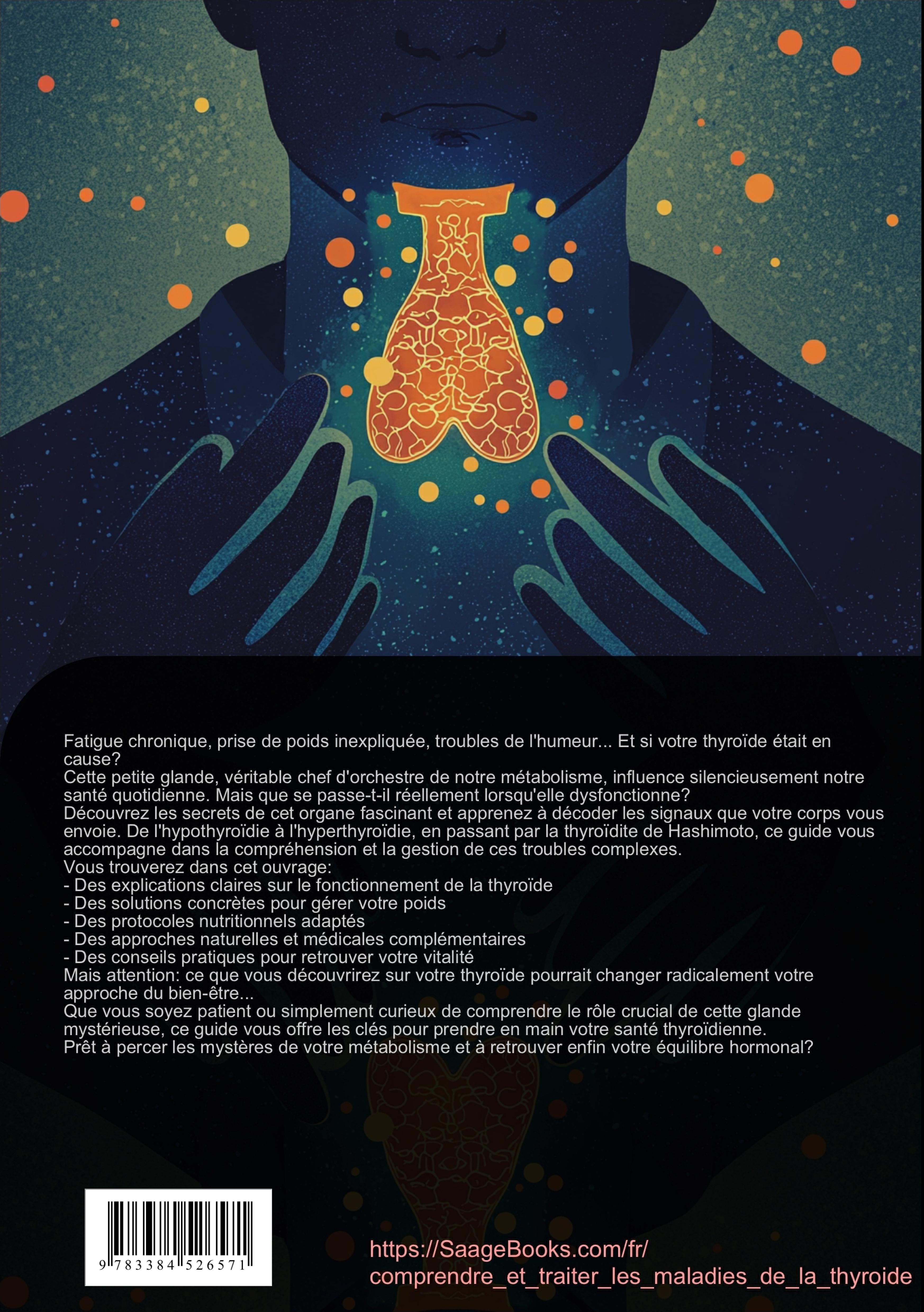 Ce livre sur la thyroïde offre une approche détaillée et pratique pour comprendre et gérer les troubles thyroïdiens.La première partie présente les fondamentaux de la thyroïde, expliquant son anatomie, sa physiologie et son rôle crucial dans notre métabolisme. Les lecteurs découvriront les mécanismes hormonaux complexes et les interactions avec d'autres organes.Une attention particulière est portée au lien entre thyroïde et prise de poids, un sujet qui préoccupe de nombreux patients. L'ouvrage détaille les différents troubles thyroïdiens :- L'hypothyroïdie et ses manifestations- L'hyperthyroïdie et ses symptômes- La thyroïdite de HashimotoLes méthodes diagnostiques sont présentées de manière claire, incluant les analyses de laboratoire et l'imagerie médicale. Les auteurs proposent des solutions thérapeutiques variées :- Traitements médicamenteux conventionnels- Approches nutritionnelles adaptées- Thérapies naturelles complémentaires- Techniques de gestion du stressLa section sur la gestion du poids offre des conseils pratiques pour optimiser son métabolisme et retrouver un équilibre pondéral. Des recommandations concrètes sont données pour :- L'alimentation équilibrée- L'activité physique adaptée- Le sommeil réparateur- La gestion du stress quotidienCe guide aide les lecteurs à mieux comprendre leur condition et à prendre en charge leur santé thyroïdienne de manière active et éclairée.Ce livre a été créé en utilisant des technologies innovantes telles que l'Intelligence Artificielle ainsi que des outils spécialement développés - par exemple, pour la recherche d'idées, la recherche d'informations, l'écriture, la relecture, l'assurance qualité et la conception d'illustrations décoratives.Ainsi, nous souhaitons vous offrir une expérience de lecture particulièrement cohérente, moderne et d'une qualité encore supérieure.