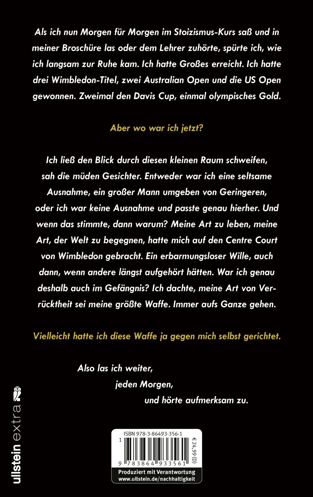 »Boris Becker war früh ganz oben und immer wieder auch ganz unten: ein Kämpfer, ein Meister des Comebacks. Er erzählt von Fehlern und Verzeihen, von kalten Nächten im Gefängnis – und davon, wie man sich selbst wiederfindet, wenn alles verloren scheint.«
