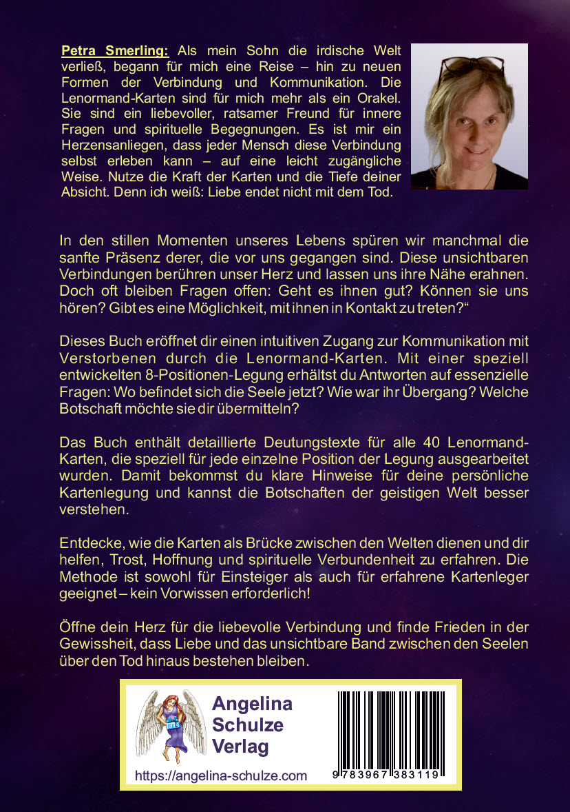 | Schlagworte | Beratung • Bildkarten • bildkarten coaching • blockierte Energien • Botschaft • Botschaft aus dem Jenseits • Brücke ins Jenseits • Coach dich selbst • Coaching • Deutungen • Heilung • Jenseits • Jenseitskontakt • Kartenlegen • Kartenlegen lernen • Kartenleger • Kartenlegerin • Kontakt mit Verstorbenen • Lebensberater • Lenormand • Lenormandkarten • Loslassen • Psychotherapie • Regenbogenbrücke • Seele • Selbstheilung • Selbsthilfe • Therapeuten • Therapie • Transformation • Vergebung • Versöhnung • Verstorbene |