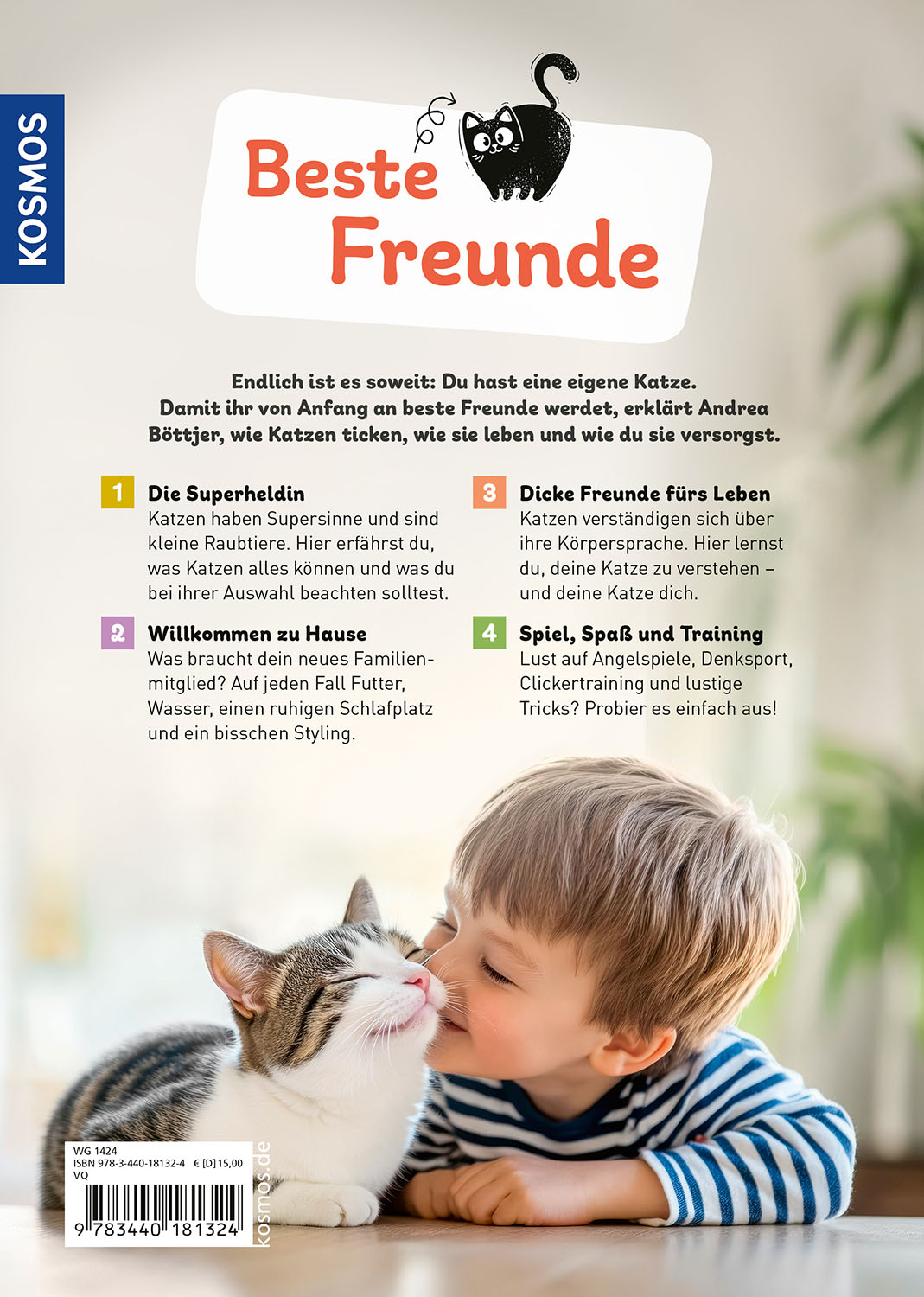 Familienzuwachs auf vier Pfoten? Die Kinder sind Feuer und Flamme und wollen sofort kuscheln, spielen und sich um ihren neuen Freund kümmern. Damit dies auch gelingt, zeigt Andrea Böttjer, wie Kinder richtig mit Katzen umgehen. Spielerisch werden sie an das Wesen herangeführt, lernen, was Körpersprache bedeutet, wie sie ihrem Tier etwas beibringen können und welche Spiele und Tricks gemeinsam Spaß machen. Das erfolgreiche Losleg-Buch für Nachwuchs-Katzenbändiger, jetzt ganz neu und erweitert.