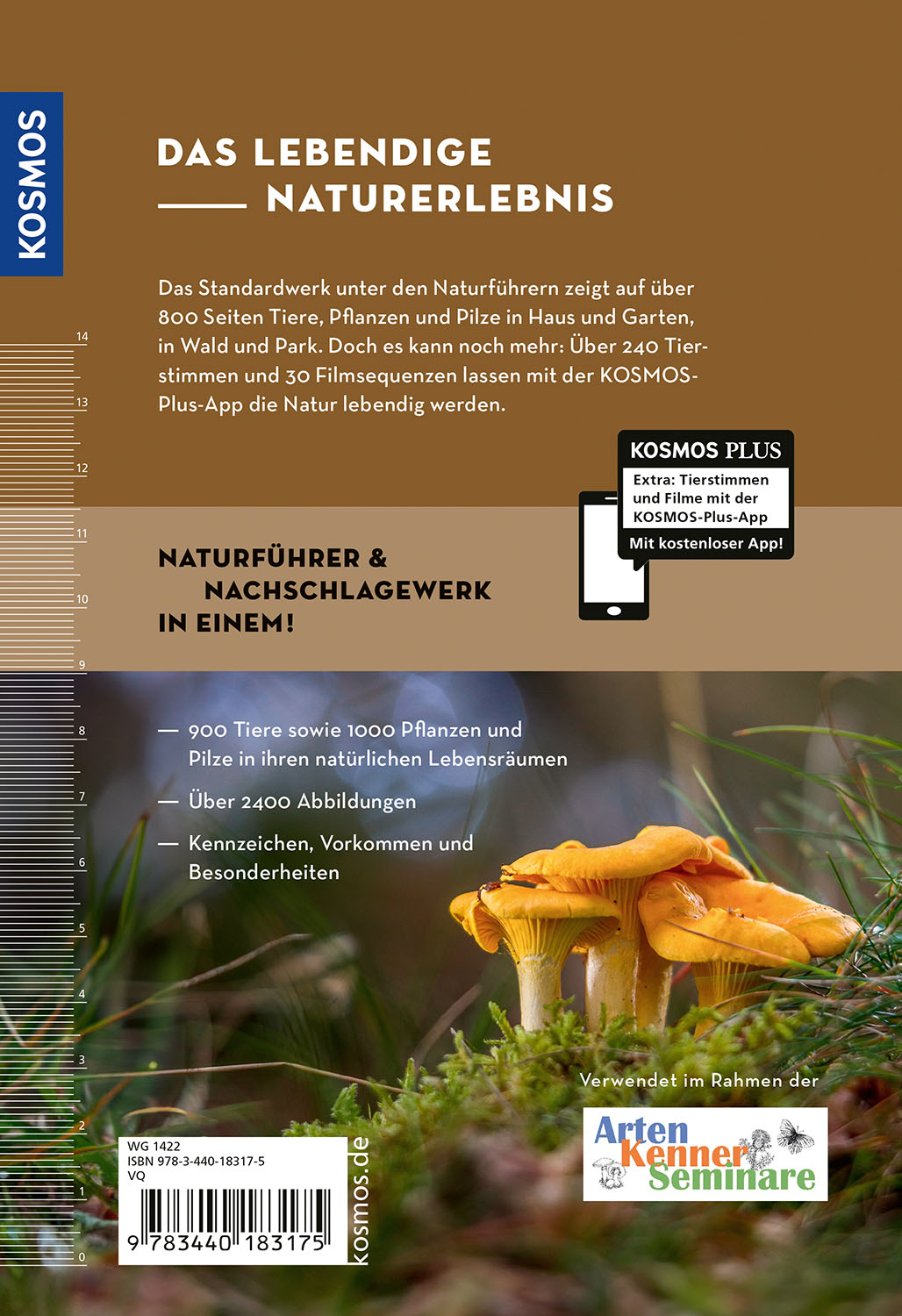 Das Nachschlagewerk in Sachen Natur! Hier findet sich alles, was in Haus und Garten, bei Spaziergängen, Wanderungen und im Urlaub zu entdecken ist. 900 Tiere (Wirbeltiere: Säugetiere, Vögel, Reptilien und Amphibien, Fische; Wirbellose: Insekten, Spinnen, Krebse, Schnecken, Muscheln, Würmer, Stachelhäuter) sowie 1000 Pflanzen (Bäume und Sträucher, Blütenpflanzen, Gräser, Farne, Moose, Flechten, Algen) und Pilze in ihren natürlichen Lebensräumen – das ist Artenfülle pur! Über 2400 Abbildungen und gezielte Informationen zu Kennzeichen, Vorkommen und Besonderheiten zeigen die schönsten Seiten der Natur. Der KOSMOS-Farbcode garantiert einen schnellen Zugriff auf die Artengruppen. Das Plus zum Buch: die kostenlose KOSMOS-PLUS-App mit 243 Tierstimmen und 30 Filmen.