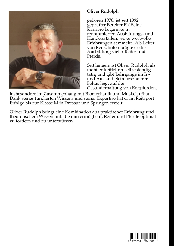 Oliver Rudolph, geboren 1970, ist seit 1992 geprüfter Bereiter FN. Seine Karriere begann er in renommierten Ausbildungs- und Handelsställen, wo er wertvolle Erfahrungen sammelte. Als Leiter von Reitschulen prägte er die Ausbildung vieler Reiter und Pferde. Seit langem ist Oliver Rudolph als mobiler Reitlehrer selbstständig tätig und gibt Lehrgänge im In- und Ausland. Sein besonderer Fokus liegt auf der Gesunderhaltung von Reitpferden, insbesondere im Zusammenhang mit Biomechanik und Muskelaufbau. Dank seines fundierten Wissens und seiner Expertise hat er im Reitsport Erfolge bis zur Klasse M in Dressur und Springen erzielt. Oliver Rudolph bringt eine Kombination aus praktischer Erfahrung und theoretischem Wissen mit, die ihm ermöglicht, Reiter und Pferde optimal zu fördern und zu unterstützen.