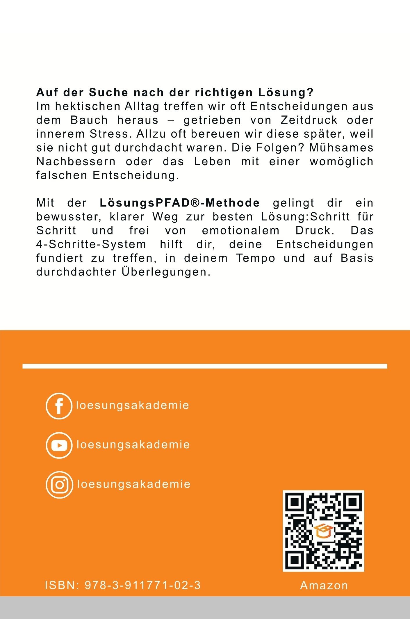 Im hektischen Alltag treffen wir oft Entscheidungen aus dem Bauch heraus – getrieben von Zeitdruck oder innerem Stress. Allzu oft bereuen wir diese später, weil sie nicht gut durchdacht waren. Die Folgen? Mühsames Nachbessern oder das Leben mit einer womöglich falschen Entscheidung. Mit der LösungsPFAD®-Methode gelingt dir ein bewusster, klarer Weg zur besten Lösung – Schritt für Schritt und frei von emotionalem Druck. Das 4-Schritte-System hilft dir, deine Entscheidungen fundiert zu treffen, in deinem Tempo und auf Basis durchdachter Überlegungen. Lerne, wie du mit Struktur und Methode nicht nur Ziele erreichst, sondern auch langfristige Zufriedenheit und Selbstbewusstsein aufbaust. Die LösungsPFAD®-Methode ist dein Schlüssel zu nachhaltigen Entscheidungen, die dich glücklicher und sicherer machen. Starte jetzt und entdecke den Weg zu deiner persönlichen Lebenszufriedenheit!