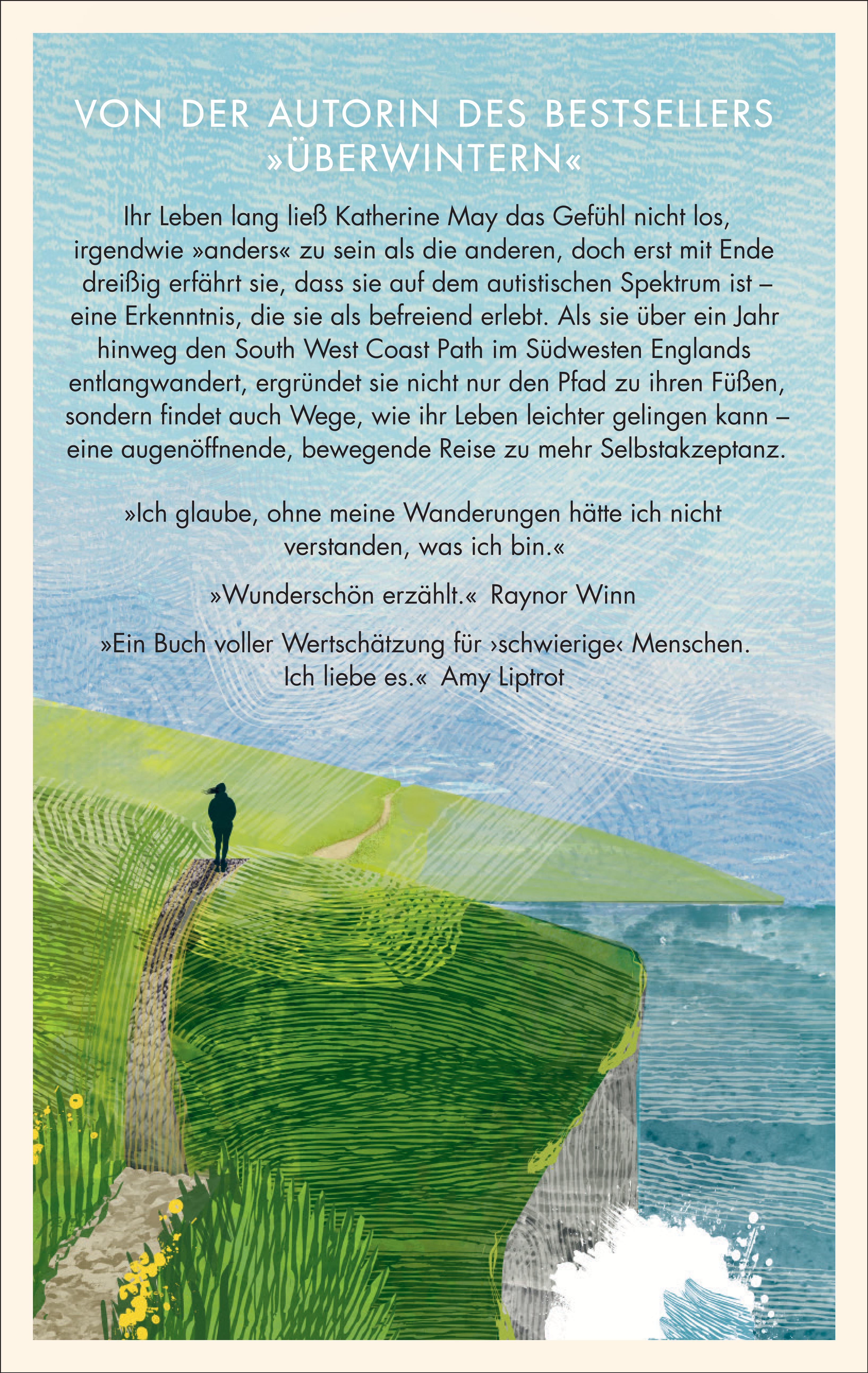 Im August 2015 macht Katherine May sich auf, um den 1041 Kilometer langen South West Coast Path Way entlang der Küsten von Somerset, Devon und Cornwall nach Dorset zu wandern. Sie will den Kopf freibekommen, endlich verstehen, warum ihr so vieles in ihrem Leben schwerer zu fallen scheint als anderen: Warum hat sie immer wieder das Gefühl, nicht recht zu verstehen, was andere meinen, wenn sie mit ihr sprechen? Warum verspürt sie so oft den Impuls, aus einer Gruppe Menschen in die Einsamkeit zu flüchten? Und warum empfindet sie es als besonders herausfordernd, Mutter zu sein? Je öfter sie einen Fuß vor den anderen setzt, bei Wind und Wetter an der Küste entlang, desto klarer wird ihr, woher ihr »Anderssein« rührt - und dass die Wanderung auch eine Wanderung zu ihr selbst ist.