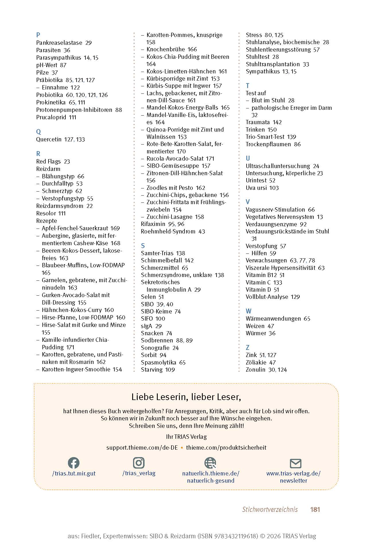 | Schlagworte | Aufstoßen • Bauchschmerzen • Blähbauch • Blähungen • Darm • Darmflora • Dünndarm • Gluten • Leaky Gut • Magensäure • Mikrobiom • Mikronährstoffe • Nährstoffe • Nahrungsmittelunverträglichkeit • Pankreasinsuffizienz • Präbiotika • Reizdarm • SIBO • Stuhlgang • Vagusnerv • Verdauung • Verdauungsprobleme • Verstopfung |