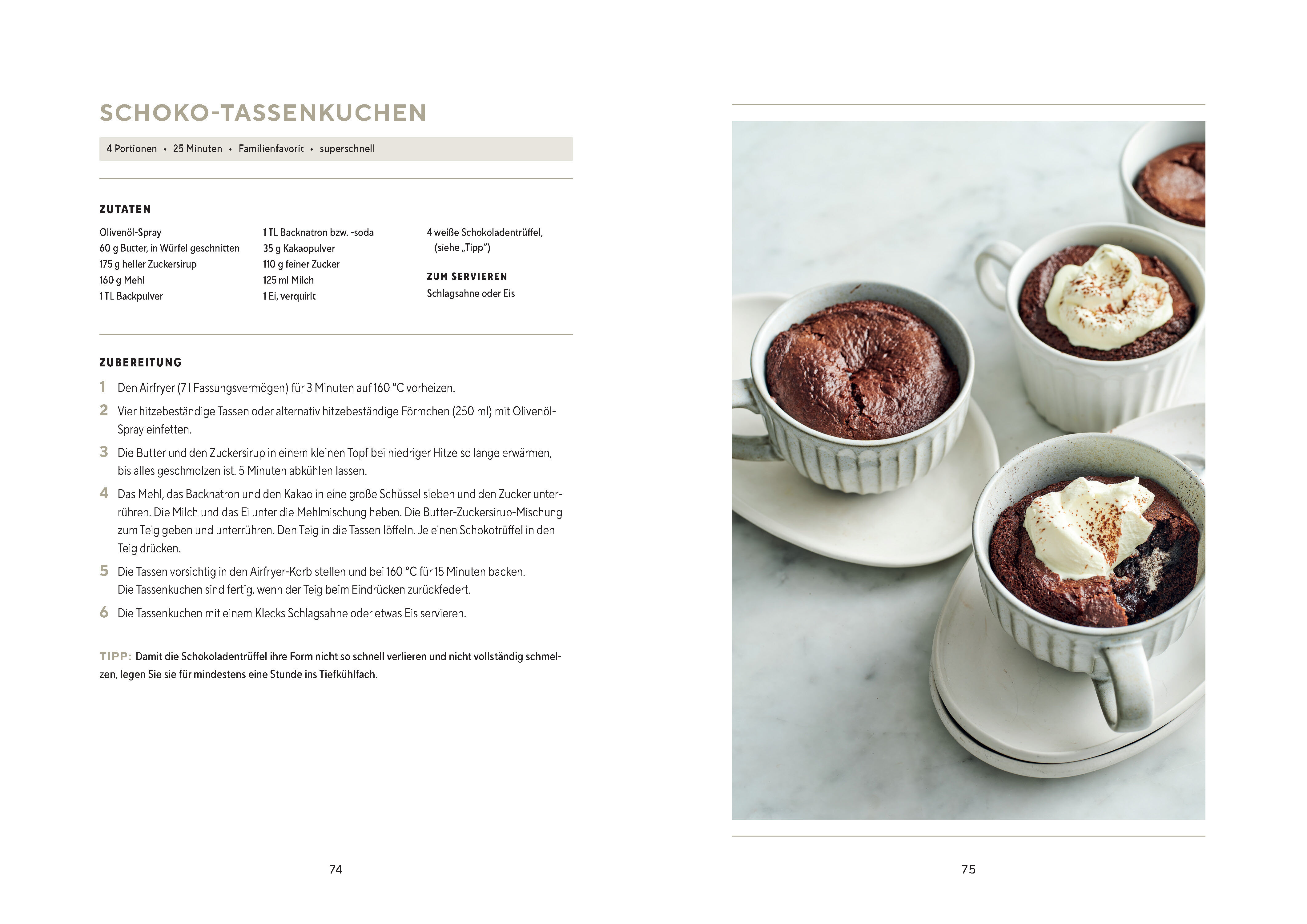 Mit der Heißluftfritteuse lassen sich köstliche vegetarische Gerichte schnell, gesund und total einfach zubereiten - und dies (fast) ohne Fett! Ob zum Frühstück, Mittag- oder Abendessen kommt der Airfryer zum Einsatz und zaubert lecker-gesunde Speisen wie ein mexikanisches Omelett mit Avocado-Salsa, Süßkartoffel-Samosas oder Tarte Tatin mit Karotten auf den Tisch. Auch kleinere Snacks für Zwischendurch können im Airfryer ratzfatz zubereitet werden. Leckere Nachspeisen wie Apfel- und Beerencrumble, Donuts mit Fruchtsoßen oder Bananen-Schoko-Muffins lassen die Herzen von Süßmäulern höher schlagen.